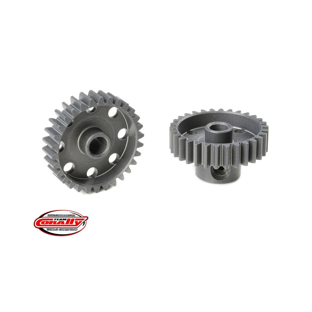 Rövid változat, anyaga edzett alumínium 7075 T6, 30 fog, fogmodul 48DP. 3,17 mm (1/8 in) átmérőjű motortengelyhez. A TEAM CORALLY fogaskerekek marással készülnek, majd edzettek a nagy pontosságú fogaskerekek biztosítása érdekében. Minden TEAM CORALLY fogaskerék az EU-ban készül.Více informací