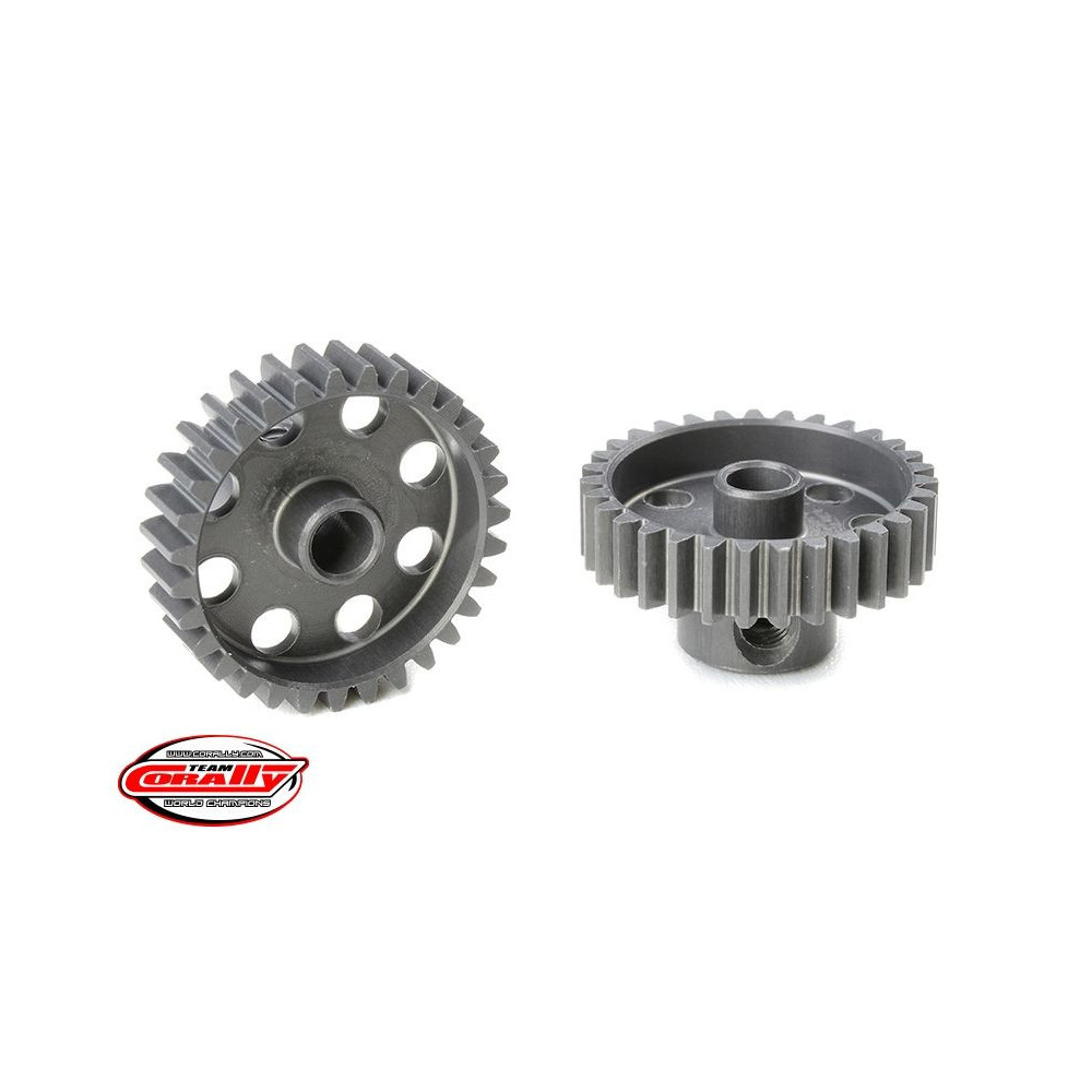 Rövid változat, anyaga edzett alumínium 7075 T6, 31 fog, fogmodul 48DP. 3,17 mm (1/8 in) átmérőjű motortengelyhez. A TEAM CORALLY fogaskerekek marással készülnek, majd edzettek a nagy pontosságú fogaskerekek biztosítása érdekében. Minden TEAM CORALLY fogaskerék az EU-ban készül.Více informací