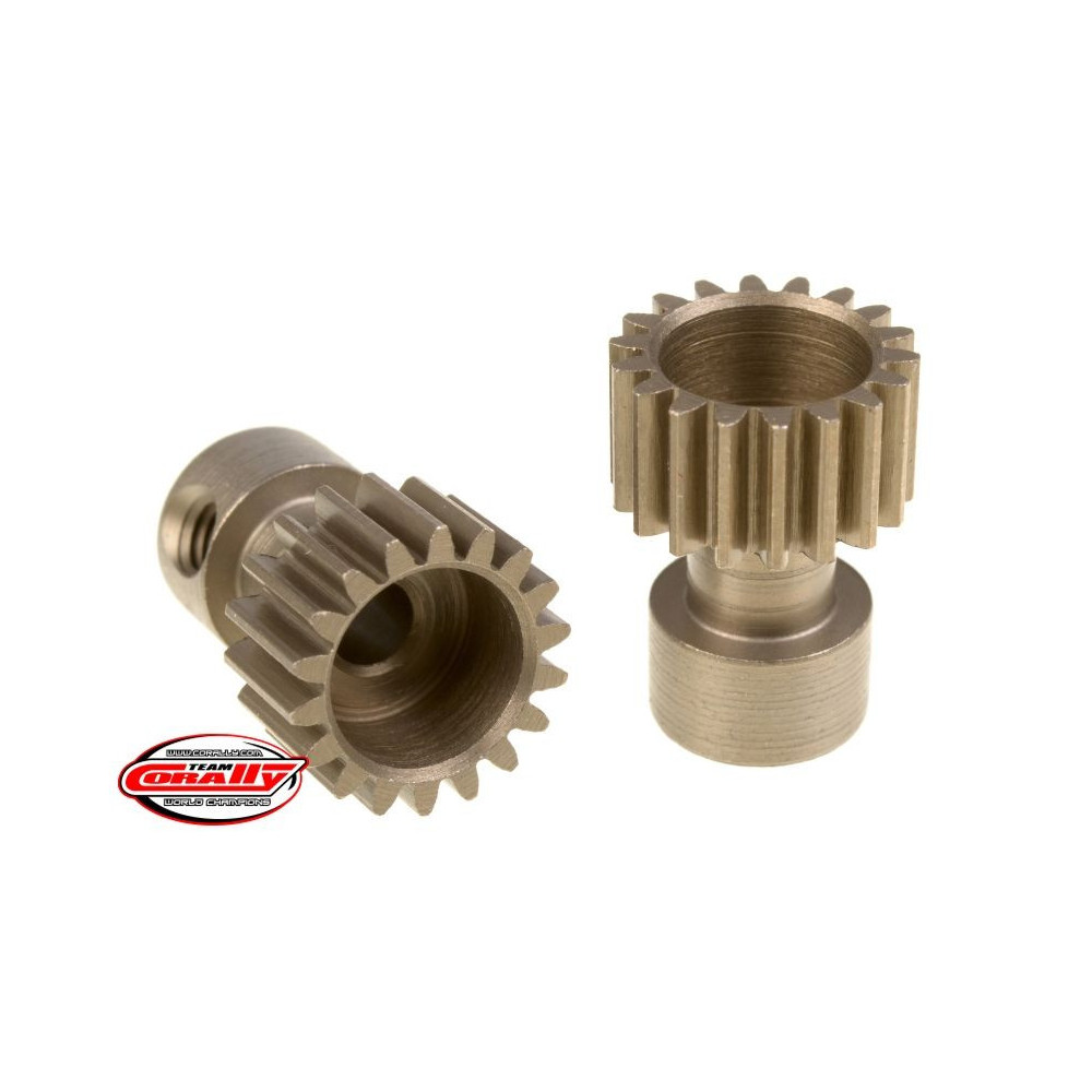 Hosszú változat, anyaga edzett acél, 18 fog, fogmodul 48DP. 3,17 mm (1/8 in) átmérőjű motortengelyhez. A TEAM CORALLY fogaskerekek marással készülnek, majd edzettek a nagy pontosságú fogaskerekek biztosítása érdekében. Minden TEAM CORALLY fogaskerék az EU-ban készül.Více informací