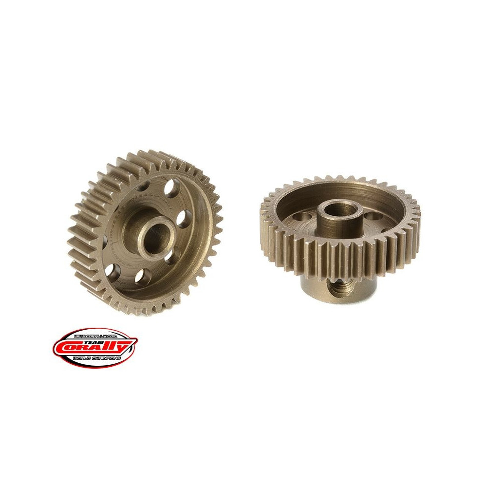 Rövid változat, anyaga edzett acél, 39 fog, fogmodul 64DP. 3,17 mm (1/8 in) átmérőjű motortengelyhez. A TEAM CORALLY fogaskerekek marással készülnek, majd edzettek a nagy pontosságú fogaskerekek biztosítása érdekében. Minden TEAM CORALLY fogaskerék az EU-ban készül.Více informací