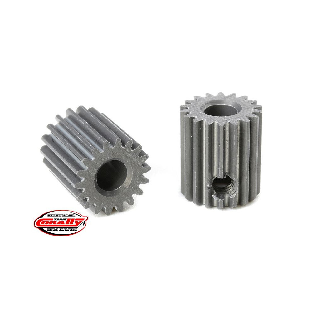Rövid változat, anyaga edzett alumínium 7075 T6, 18 fog, fogmodul 64DP. 3,17 mm (1/8 in) átmérőjű motortengelyhez. A TEAM CORALLY fogaskerekek marással készülnek, majd edzettek a nagy pontosságú fogaskerekek biztosítása érdekében. Minden TEAM CORALLY fogaskerék az EU-ban készül.