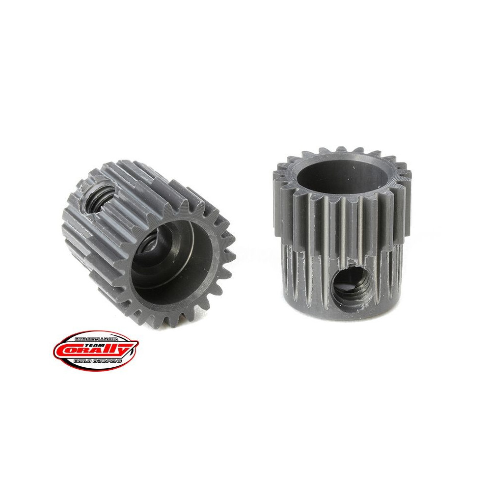 Rövid változat, anyaga edzett alumínium 7075 T6, 21 fog, fogmodul 64DP. 3,17 mm (1/8 in) átmérőjű motortengelyhez. A TEAM CORALLY fogaskerekek marással készülnek, majd edzettek a nagy pontosságú fogaskerekek biztosítása érdekében. Minden TEAM CORALLY fogaskerék az EU-ban készül.