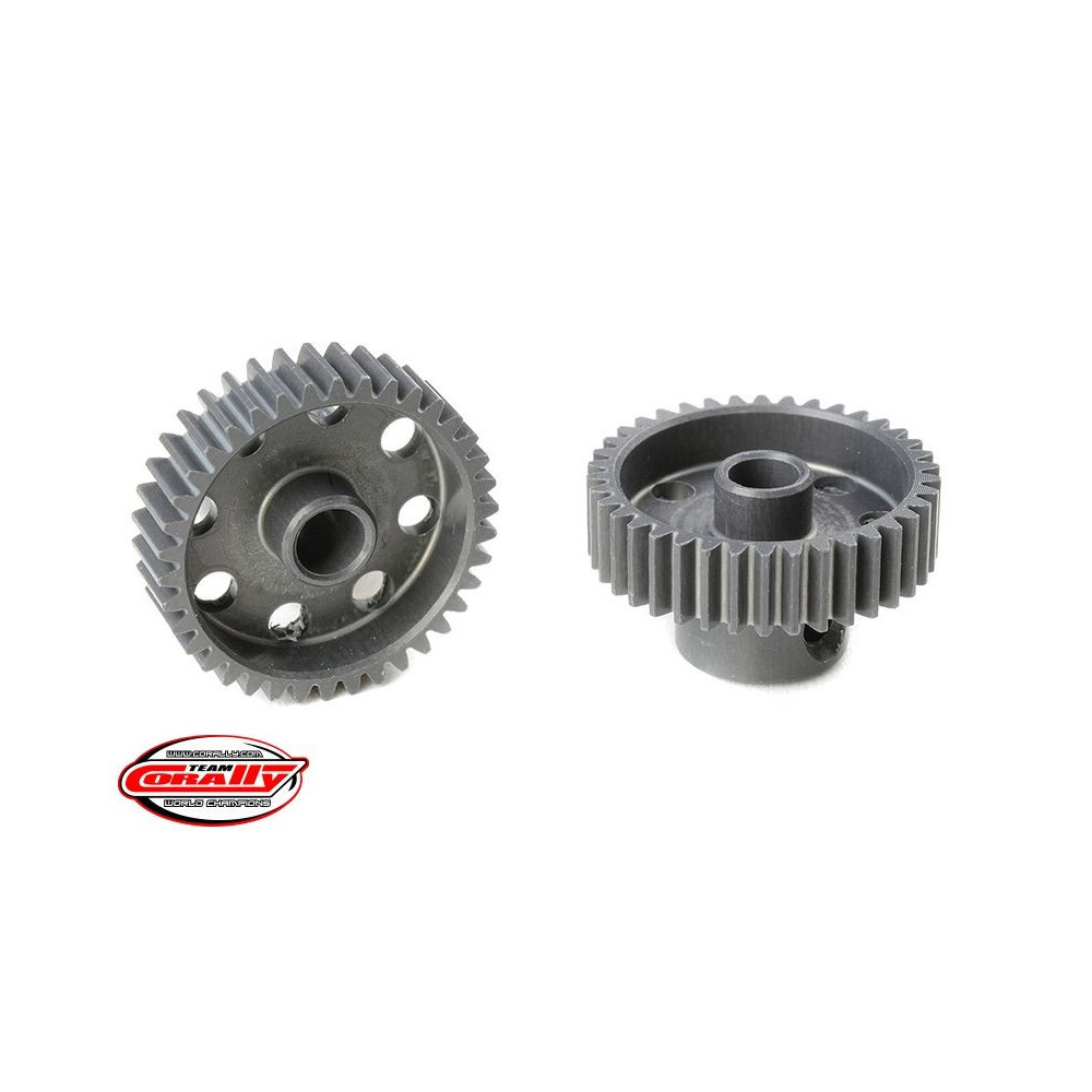 Rövid változat, anyaga edzett alumínium 7075 T6, 38 fog, fogmodul 64DP. 3,17 mm (1/8 in) átmérőjű motortengelyhez. A TEAM CORALLY fogaskerekek marással készülnek, majd edzettek a nagy pontosságú fogaskerekek biztosítása érdekében. Minden TEAM CORALLY fogaskerék az EU-ban készül.