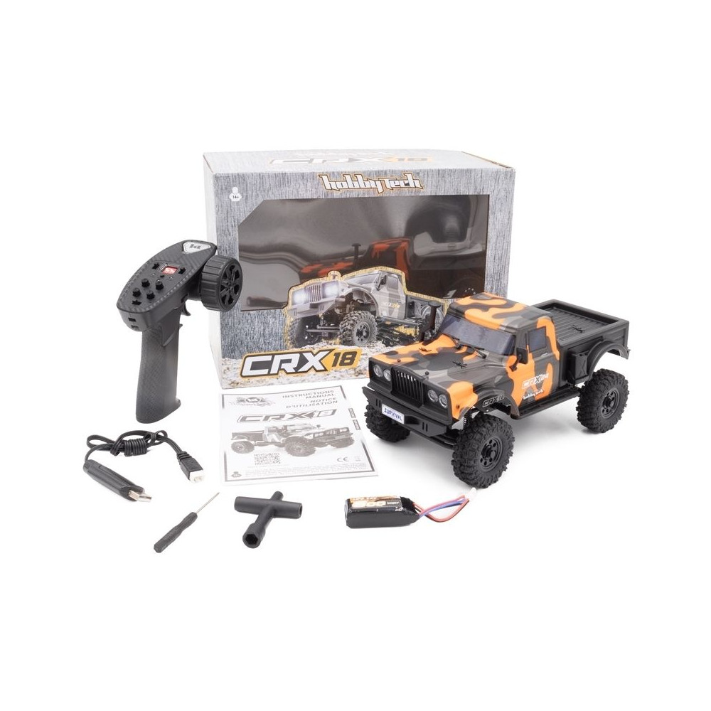 Az elektronika tekintetében a CRX18 egy minden egyben modullal (vevő-vezérlő) van felszerelve, amely 9 aljzattal rendelkezik egy teljes LED-rendszer csatlakoztatásához, amelyhez irányjelzőket és féklámpákat is lehet csatlakoztatni. A CRX alapfelszereltségként 2 LED-es fényszóróval van felszerelve, amelyek RC-készlettel vezérelhetők. Végül az akkumulátor egy LiPo 2S 600mAh kapacitású akkumulátor, amely több órás vezetést tesz lehetővé.