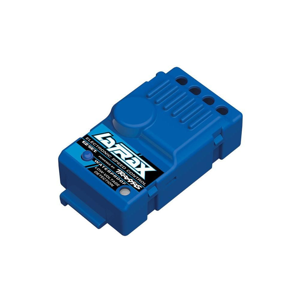 A modellbe egy vízálló* LaTrax DC vezérlő van beépítve. A vezérlő érzékeny, teljesen arányos motorműködést biztosít. Az elektronika modern MOSFET tranzisztorokat használ, amelyek nagy hatásfokkal és alacsony veszteségekkel biztosítják a tökéletes teljesítményt. Tápegység 6 NiMH vagy 2 LiPol.