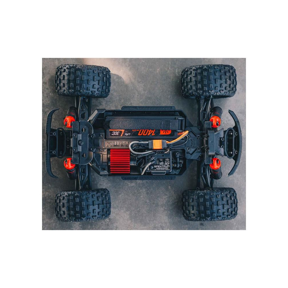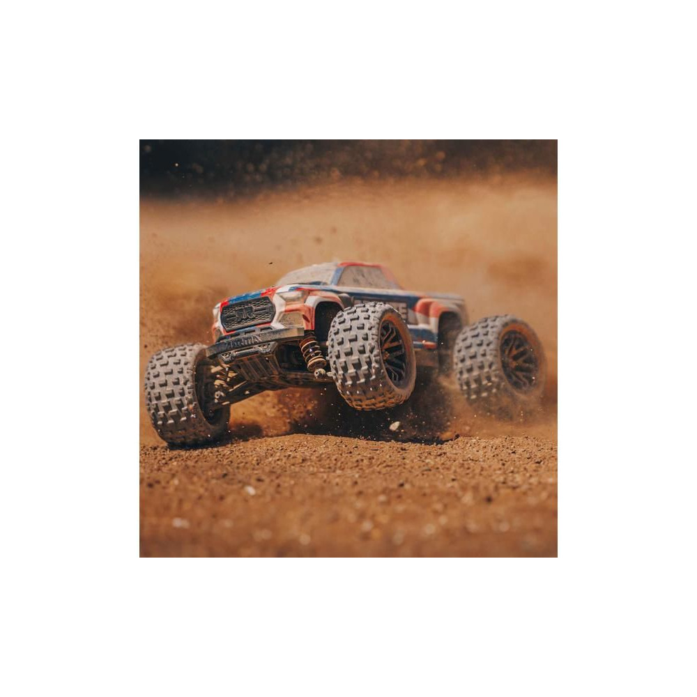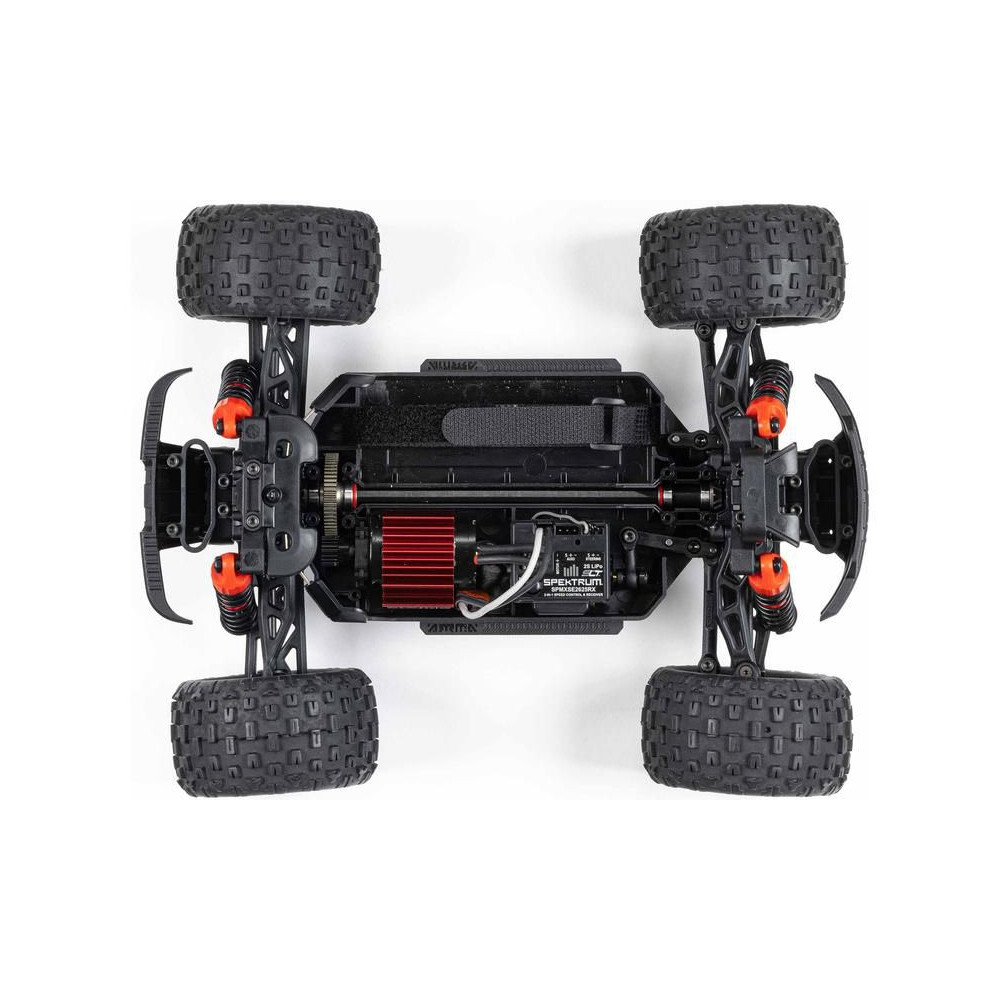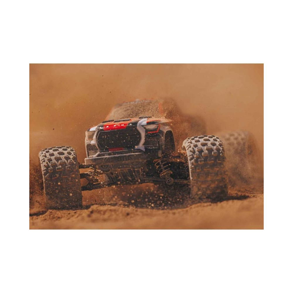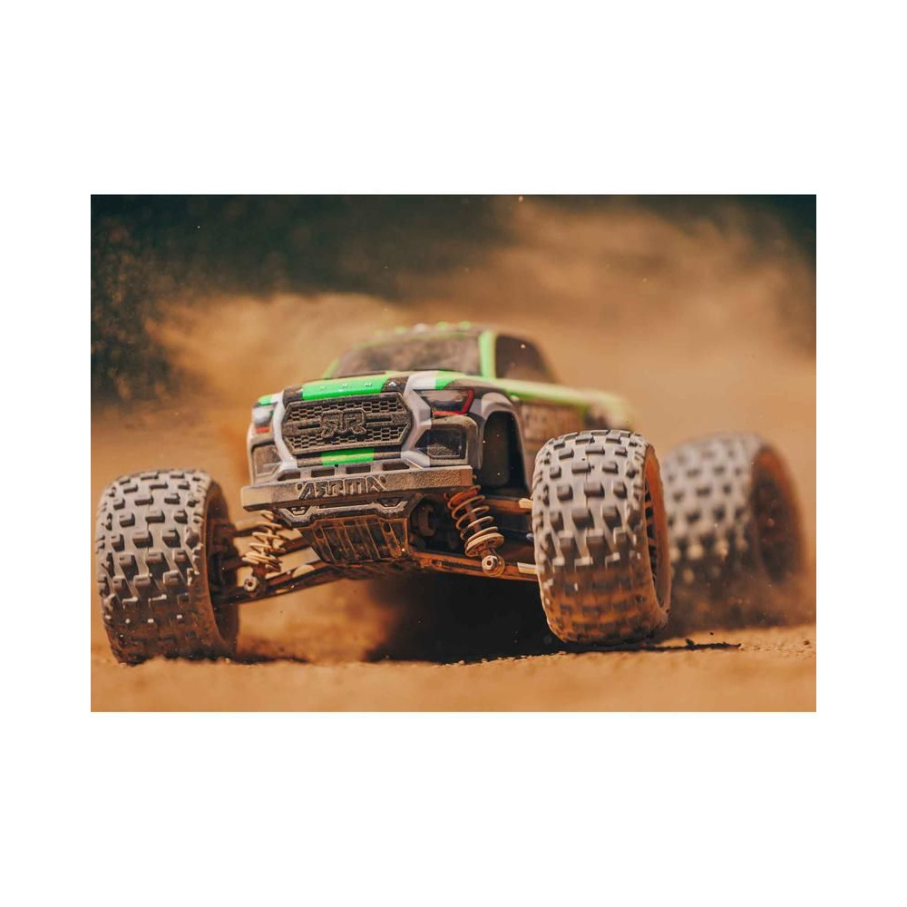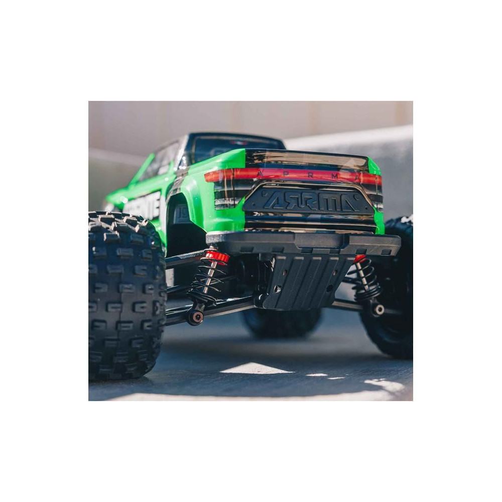 Más gyártókkal ellentétben az ARRMA nem köt kompromisszumokat a kisebb modellek esetében. A modell innovatív, rugó nélküli karosszériatartóval rendelkezik, amely biztonságosan rögzíti a karosszériát, mégis könnyen eltávolítható. Kiemelkedik a többi kisebb autómodell közül teljesítményével, nagyszerű kezelhetőségével és azokkal a képességekkel, amelyekkel lenyűgözhetsz másokat a mutatványaiddal.