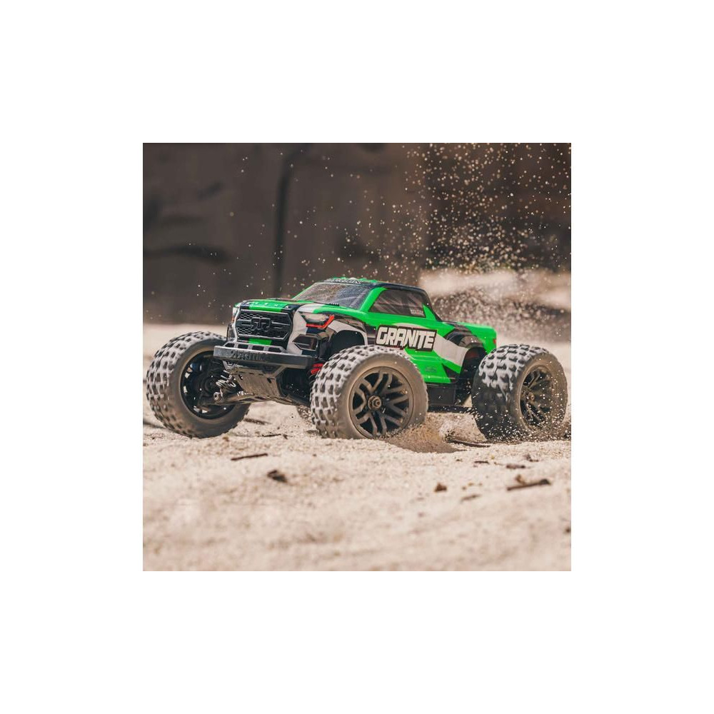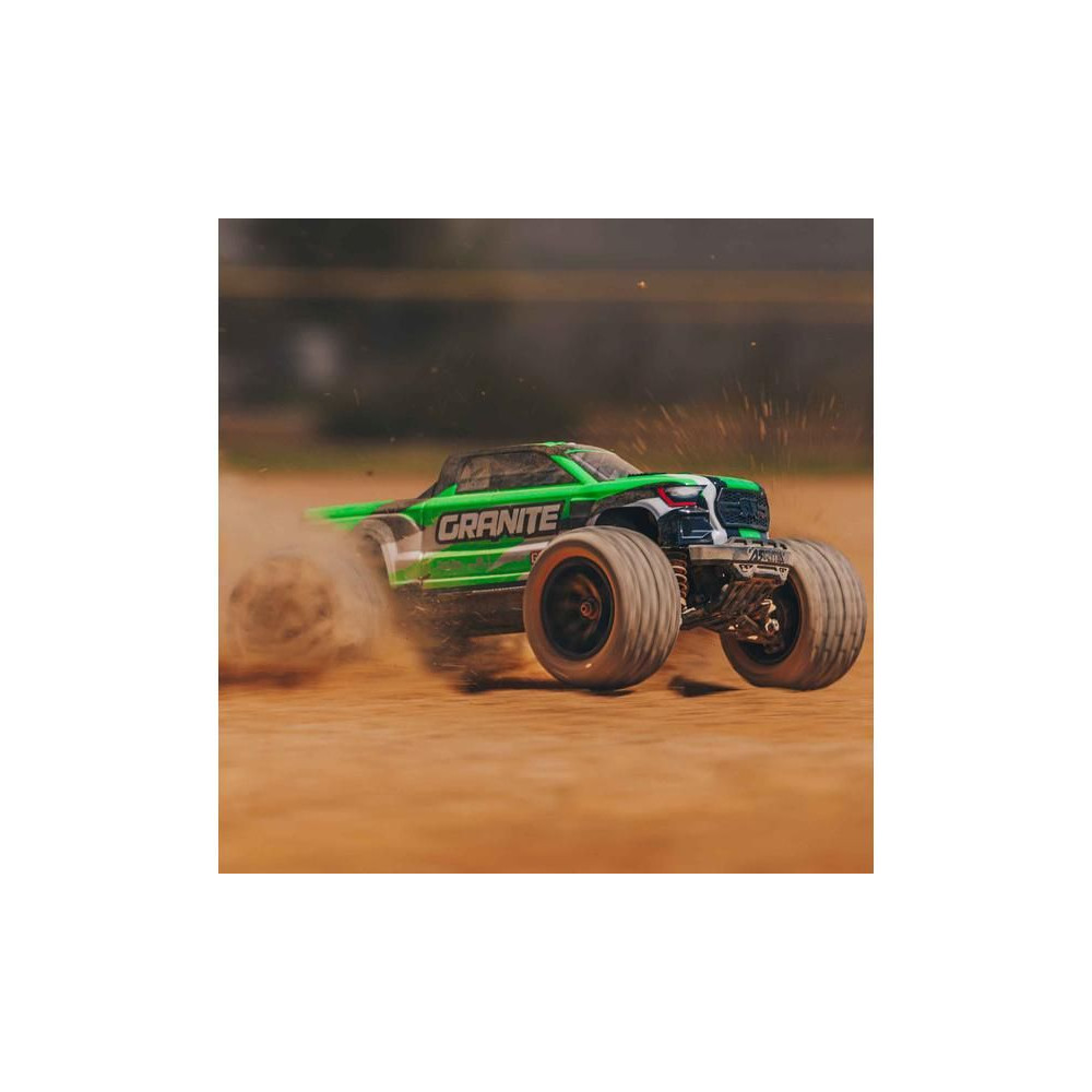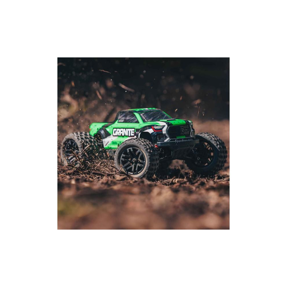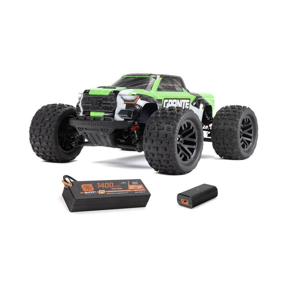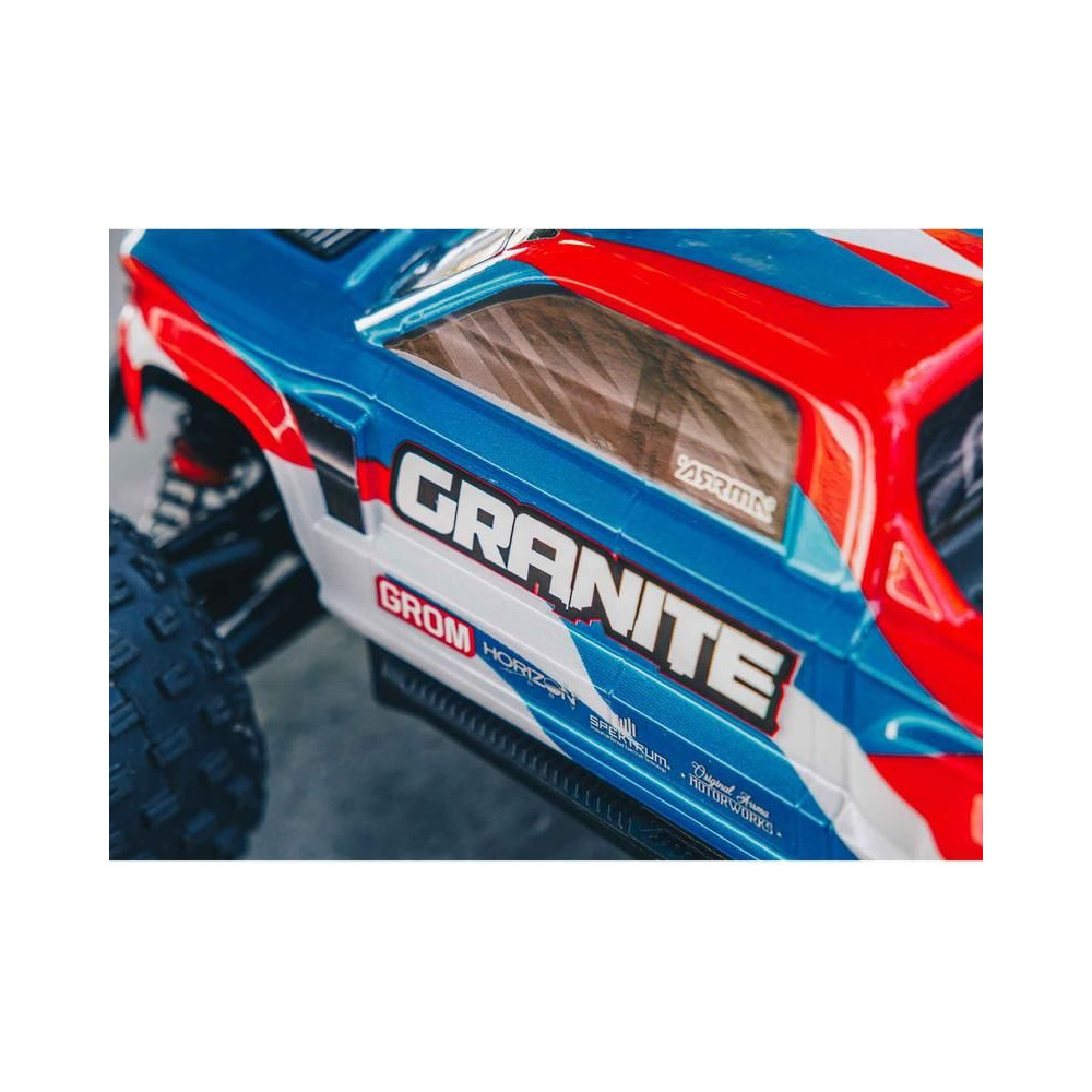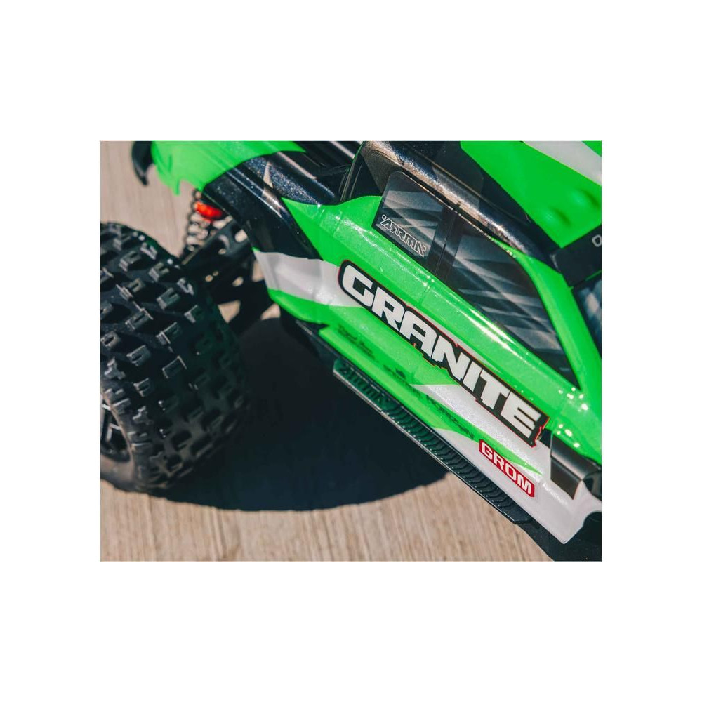 Az Arrma Granite Grom Monster Truck 1:18 méretarányú RC modellje 4WD és Smart funkciókkal szórakoztató és kompakt. Ugyanolyan magas színvonalú precíziós tervezéssel készült, mint a nagyobb Arrma Granite modell. Teljesen vezetésre kész, beleértve az akkumulátort és a töltőt is.