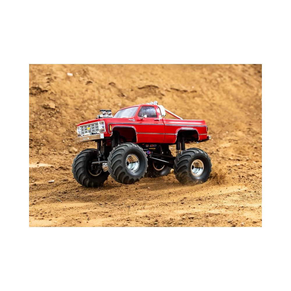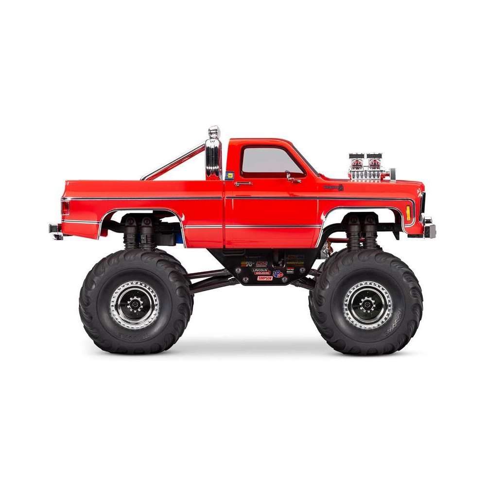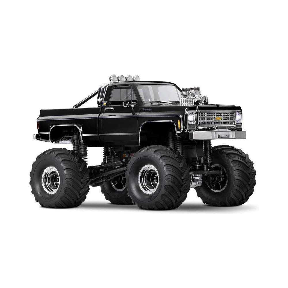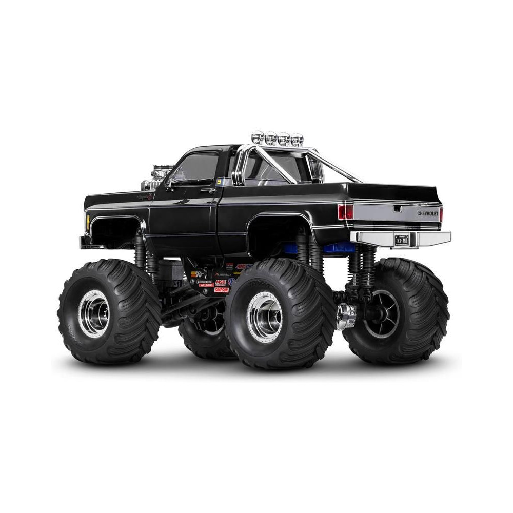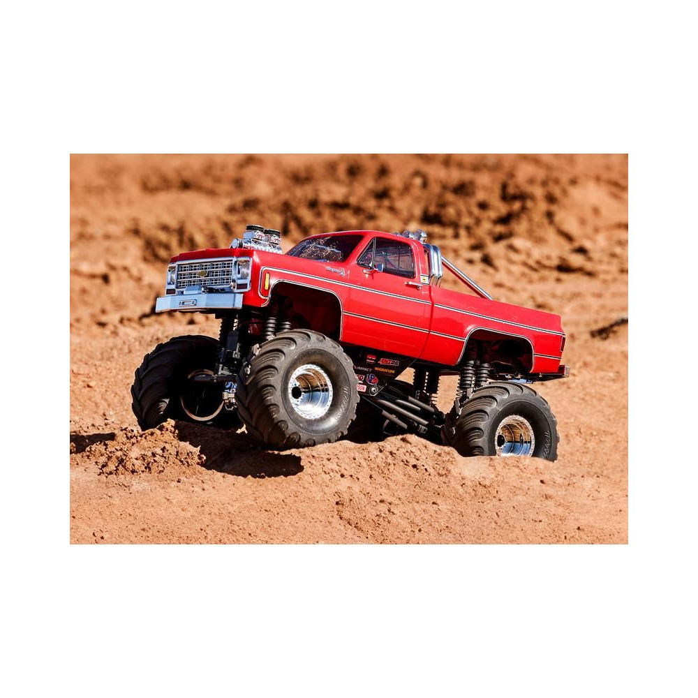 RC modell a Traxxas TRX-4MT Chevrolet K10 kiadásában Monster Truck nagyobb hasmagassággal, óriási kerekekkel4 pontos felfüggesztés, kettős olajos lengéscsillapítók, fém szervóművek, 45°-os kormányszög, klipszes karosszéria, LED fényszórók. 2S LiPo akkumulátor és USB töltő.