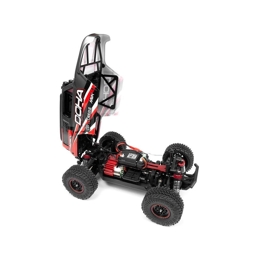 A DOHA tartós tengelyhajtással és bolygóműves differenciálművekkel rendelkezik, amelyek optimális teljesítményelosztást biztosítanak a kivételes stabilitás és a precíz kormányzás érdekében különféle terepeken. Megerősített konstrukciója a Desert teherautó eredeti nyomtatott dömper felépítményével együtt nemcsak növeli vizuális vonzerejét, hanem könnyű hozzáférést biztosít az akkumulátorhoz is. A DOHA modell négy feltűnő színváltozatban kapható.