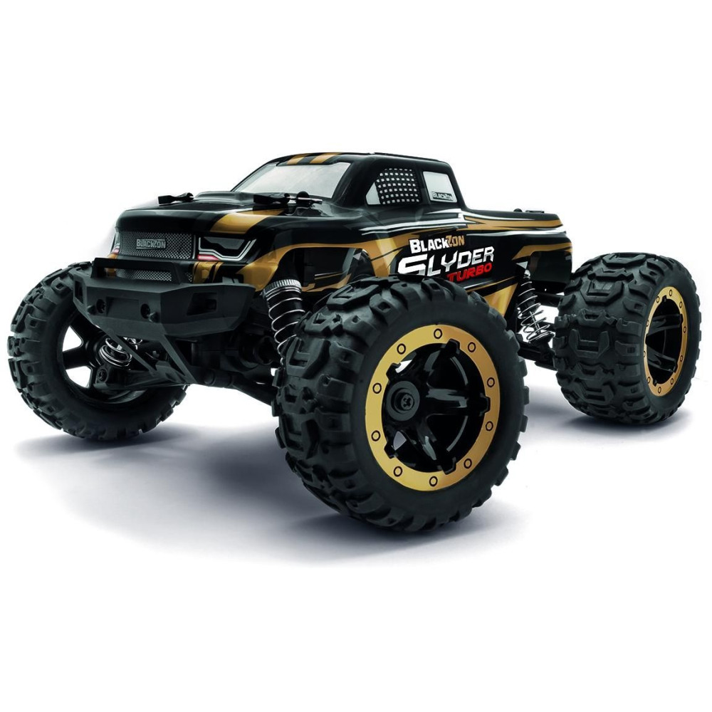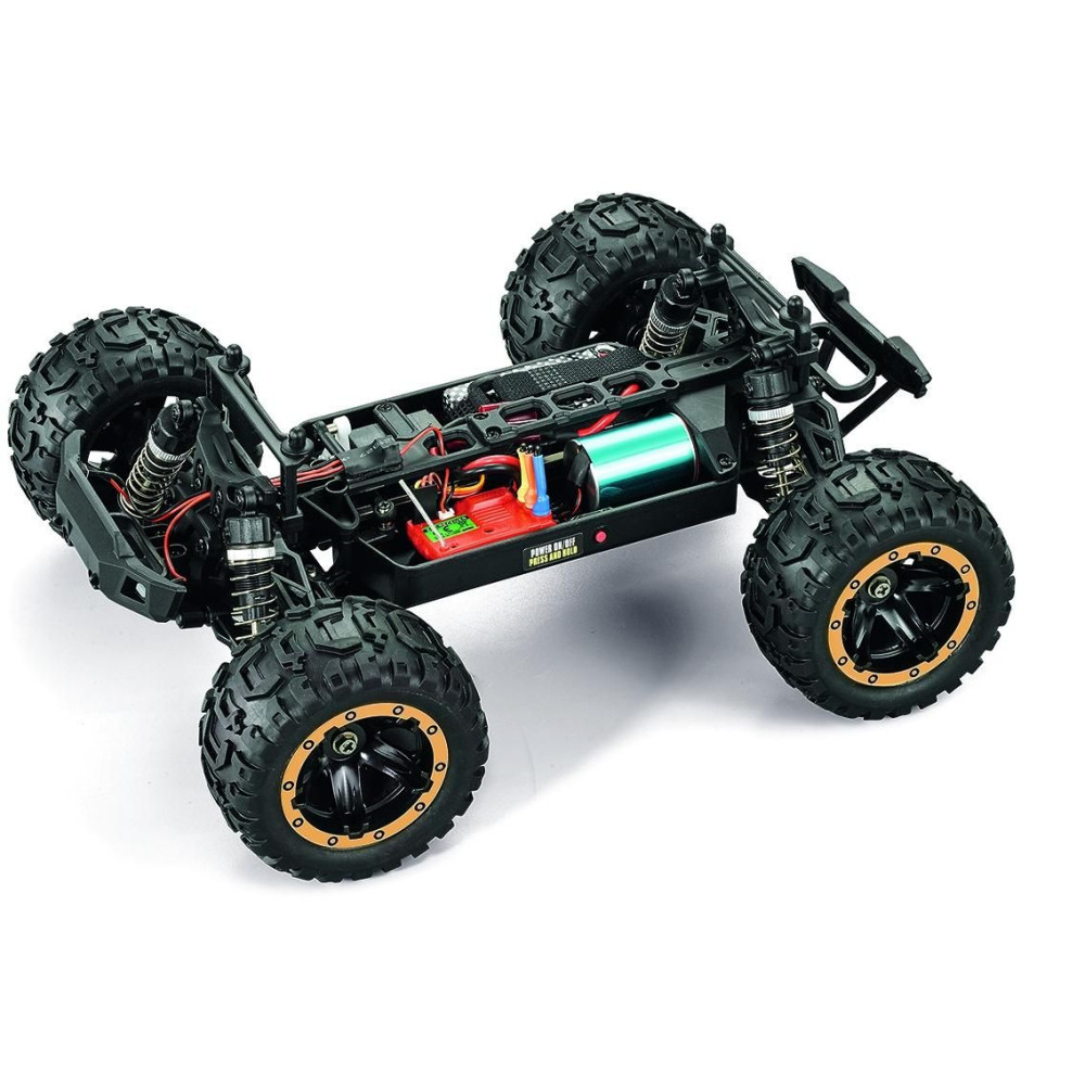 A 16 hüvelykes RC monster truck kicsi méretű, de nagy lehetőségeket rejt magában. Ez a négykerék-meghajtású autó készen áll az ugrásokra és a buckákra, és még akrobatikus mutatványok közben sem marad le. A 4x4-es hajtásnak, a paralelepipedon felfüggesztésnek és az állítható lengéscsillapítóknak köszönhetően bármilyen terep buktatóit leküzdi, a fedett fogaskerekeknek és a vízálló elektronikának köszönhetően pedig nem fél a pocsolyáktól, a sártól vagy a portól. Zöld és fekete kabátjában nemcsak lenyűgözően néz ki, de a LED-es fényszóróknak köszönhetően a Slyder rossz fényviszonyok között vagy éjszaka is alkalmas vezetésre. A modellhez LED-es lámpák tartoznak, és a motoros preferenciái szerint bárhová elhelyezhetők, majd csak csatlakoztassa a csatlakozót az akkumulátorhoz.Az alap Slyderhez képest a turbós változat egy 390-es váltóáramú motort is tartalmaz , amellyel a modell szó szerint előre repül a gázpedál lenyomásakor. Annak érdekében, hogy bárki könnyedén vezethető legyen, az adóján egy sebességválasztó található, amellyel a kezdők igényei szerint lassabb tempót lehet beállítani. Emellett egy erősebb 7,4 V-os 1000 mAh-s LiPo akkumulátort is kapsz, amely a mellékelt USB töltővel tölthető a kényelmesebb működés érdekében. Ráadásul a teljes készlet RTR (Ready To Ride) csomagolásban van, így csak csatlakoztatni kell az akkumulátort, behelyezni az elemeket az adóba, és már indulhatsz is a terepre!