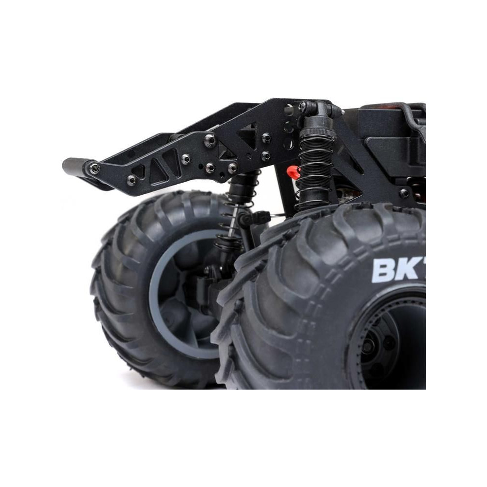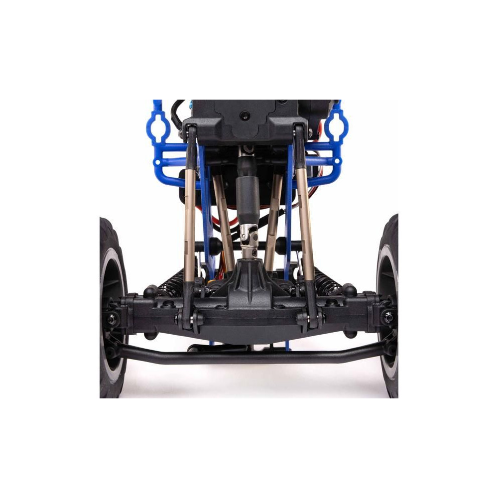 A Losi Mini LMT 4WD két fix pozíciójú hátsó rúddal és széles hengerrel rendelkezik a hátsó kerekeken való könnyű áthaladás érdekében.