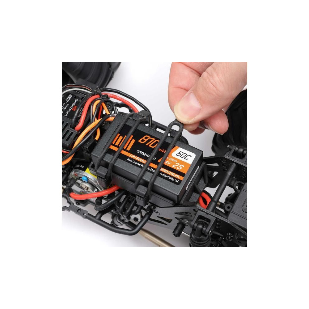 A mellékelt Spektrum Smart G2 2S LiPo akkumulátor nemcsak nagy kapacitást kínál hosszú üzemidőhöz, hanem elektronikát is tartalmaz a kényelmes és biztonságos töltés érdekében. A mellékelt USB-C töltő vagy más Spektrum Smart töltő automatikusan beolvassa az adatokat az akkumulátorból, és automatikusan megkezdi a töltést, nincs szükség semmilyen beállításra.