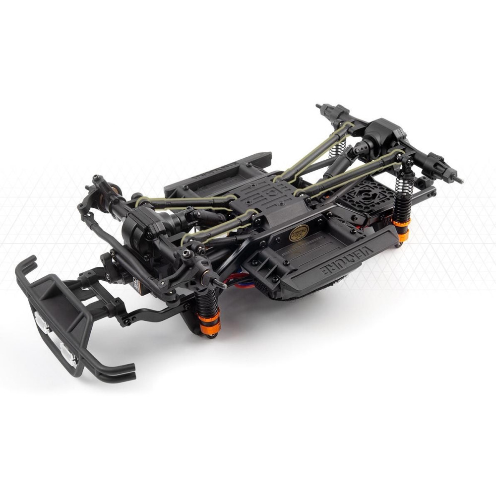 Nagyobb testvéréhez hasonlóan a Venture18 is egy strapabíró, öntött acéllétrákból készült alvázat ötvöz realisztikus felfüggesztéssel és hajtáslánccal. Kompakt méretei ellenére ez az autó lenyűgöző funkciókkal rendelkezik, beleértve az új, teljesen fémből készült, kétsebességes sebességváltót, a négylengőkaros első és hátsó felfüggesztést, valamint az univerzális, teleszkópos, ellentétesen forgó kardántengelyeket. A hitelesen osztályozott olajcsillapítóknak és a teljesen reteszelt differenciálműveknek köszönhetően a Venture18 megbízható vezetési tulajdonságokat kínál minden terepviszony között.