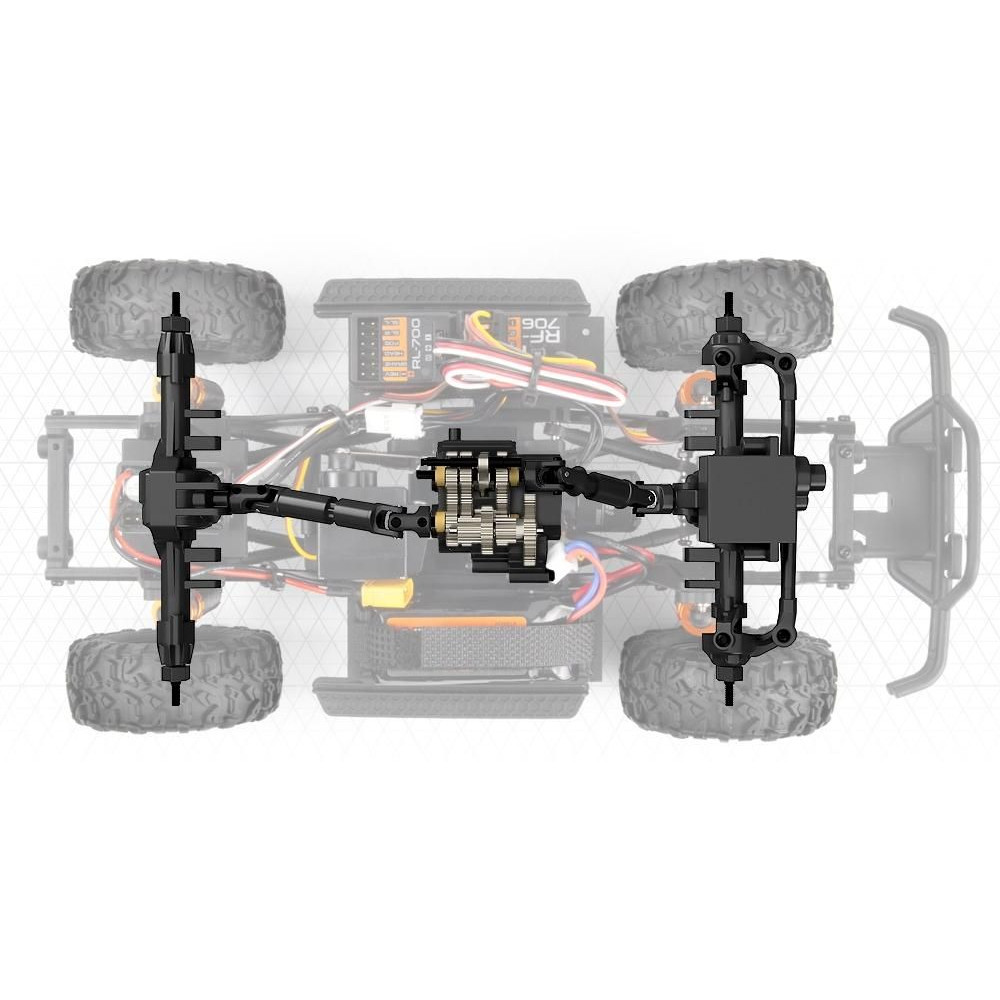 Teljesen összeszerelt, 1:18 méretarányú RC expedíciós különleges modell kétsebességes váltóval és AC meghajtással, beleértve az elektronikát és a meghajtó akkumulátort. Ideális méret kültéri és beltéri terepjáráshoz.