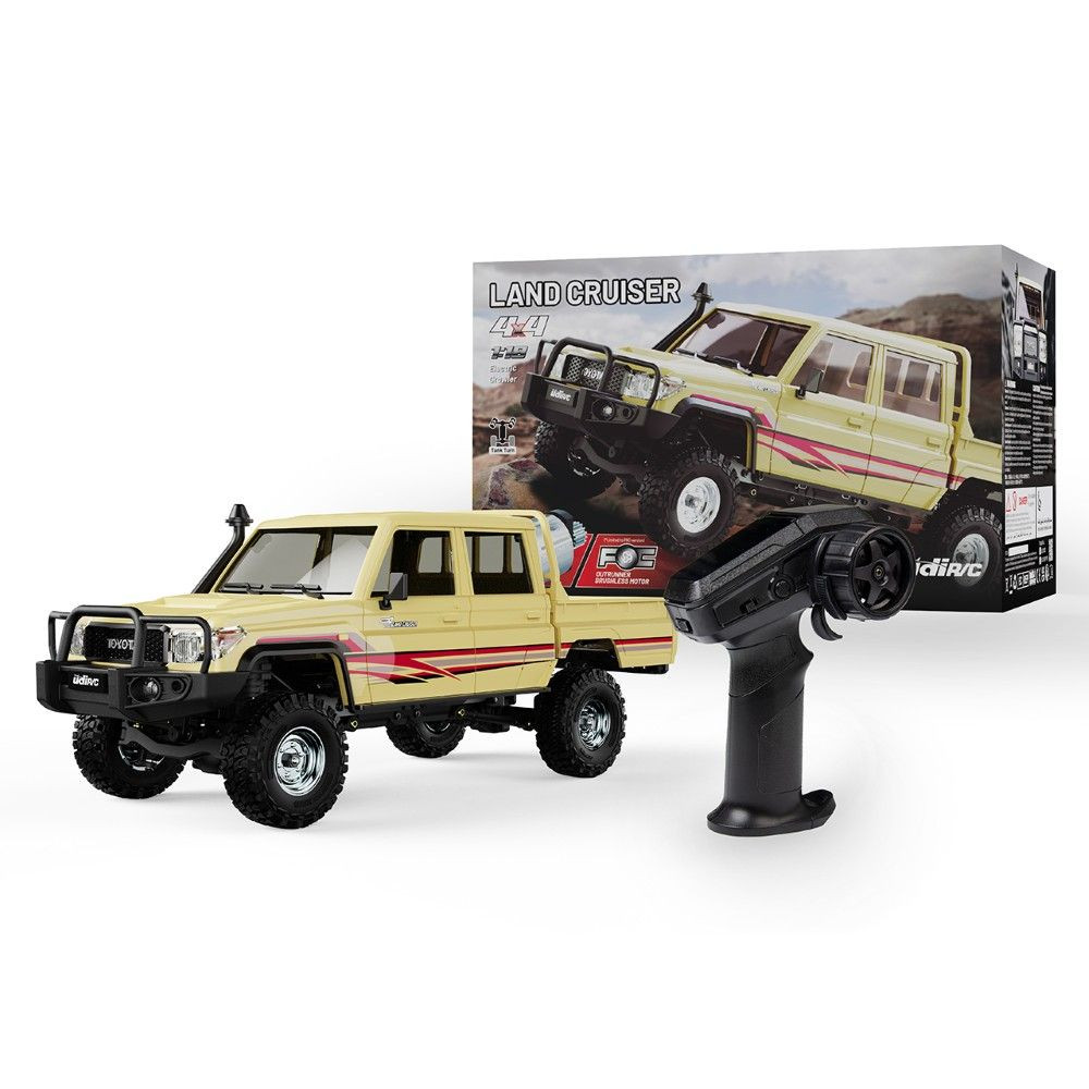 Szénkefe nélküli lánctalpas bicikli 1:18 méretarányban, összkerékhajtással, kétsebességes váltóval és valósághű LED világítással. Alkalmas terepfutáshoz és beltéri akadályok leküzdésére.