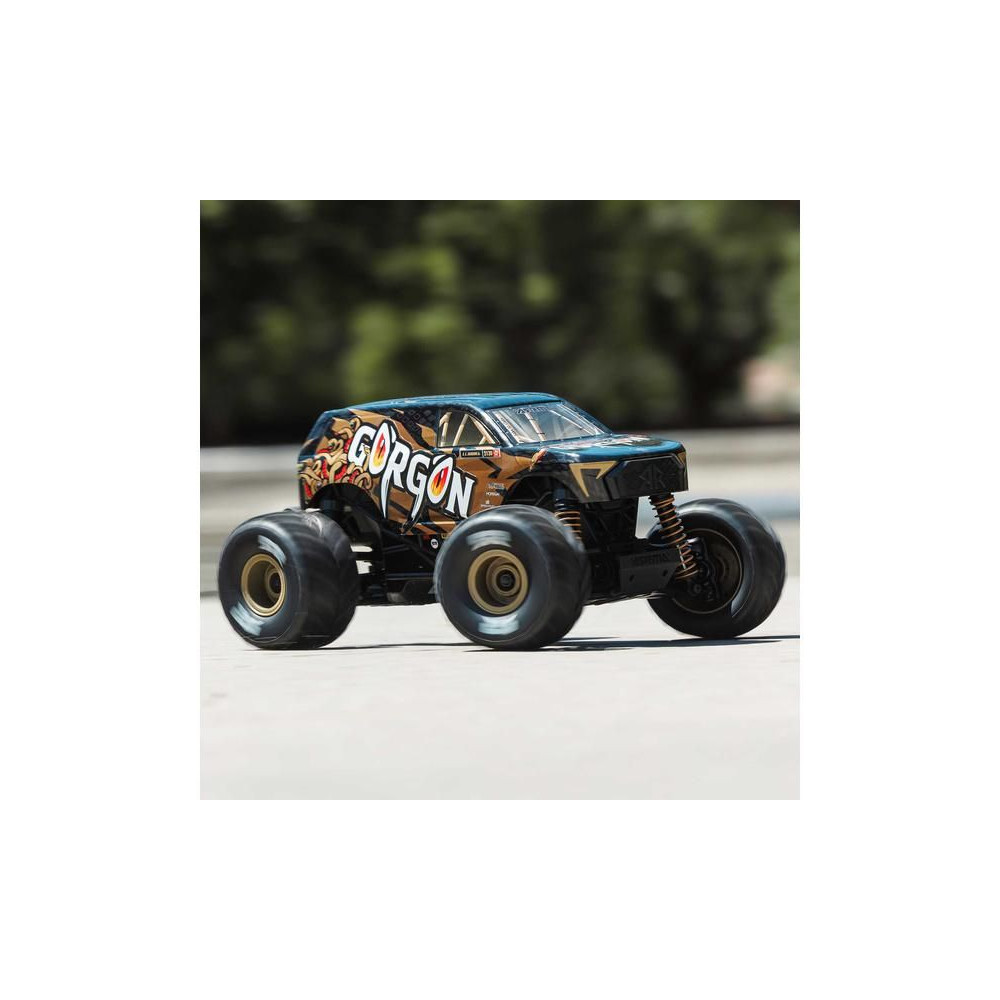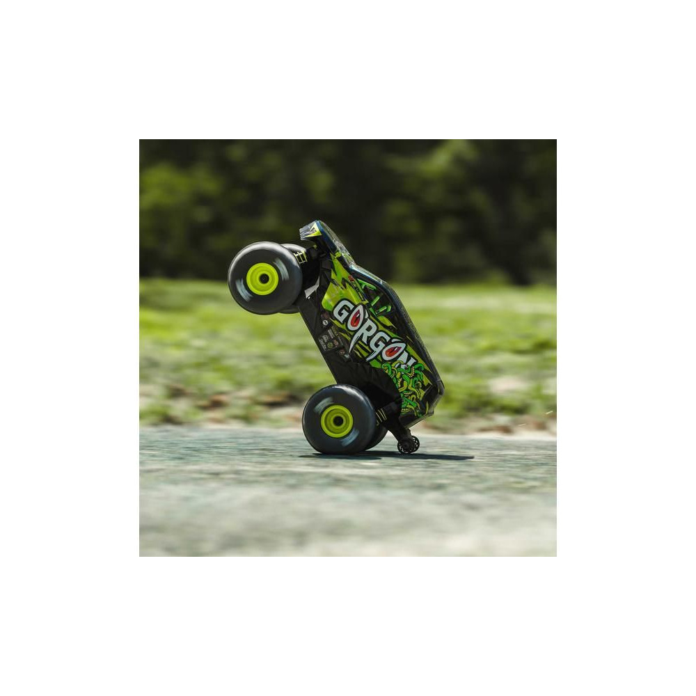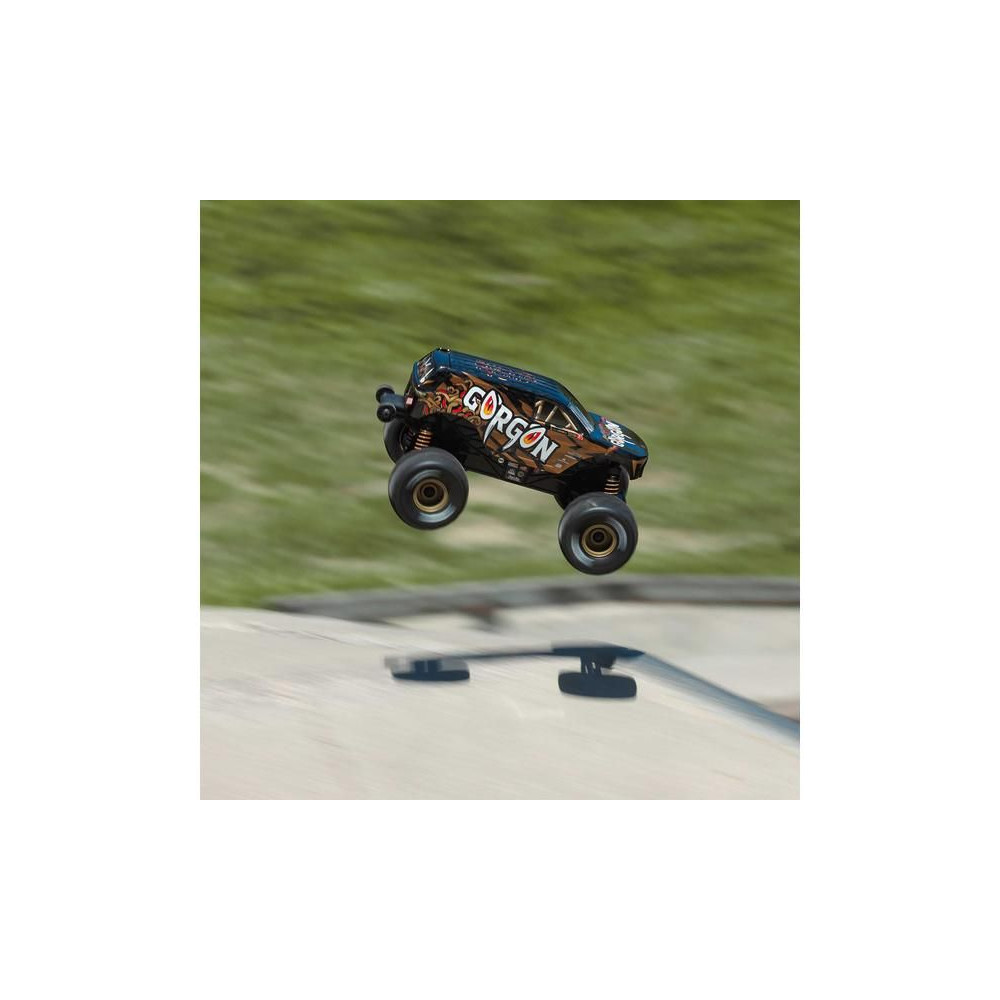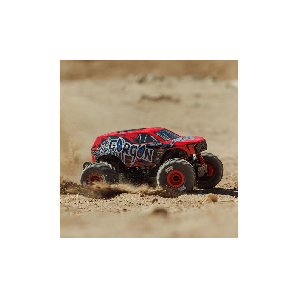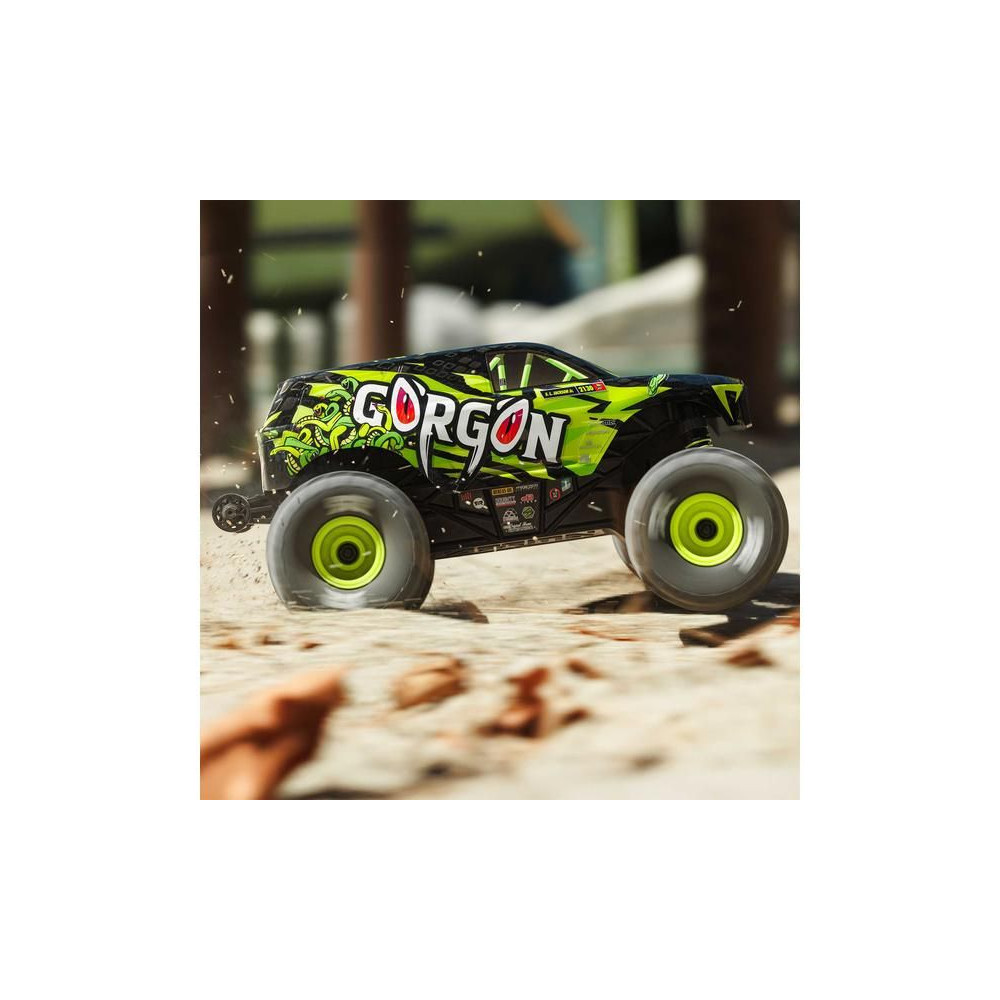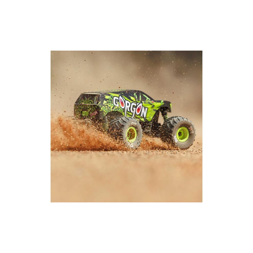 1:16 méretarányú Arrma Gorgon Grom távirányítós autómodell, 4WD meghajtással, intelligens funkciókkal és akár 30 km/h sebességgel. Precízen megépített, kisméretű, szórakoztató modell a népszerű monster truck típusból. Stílusos karosszéria, teljesen vezetésre kész, akkumulátorral és töltővel együtt.