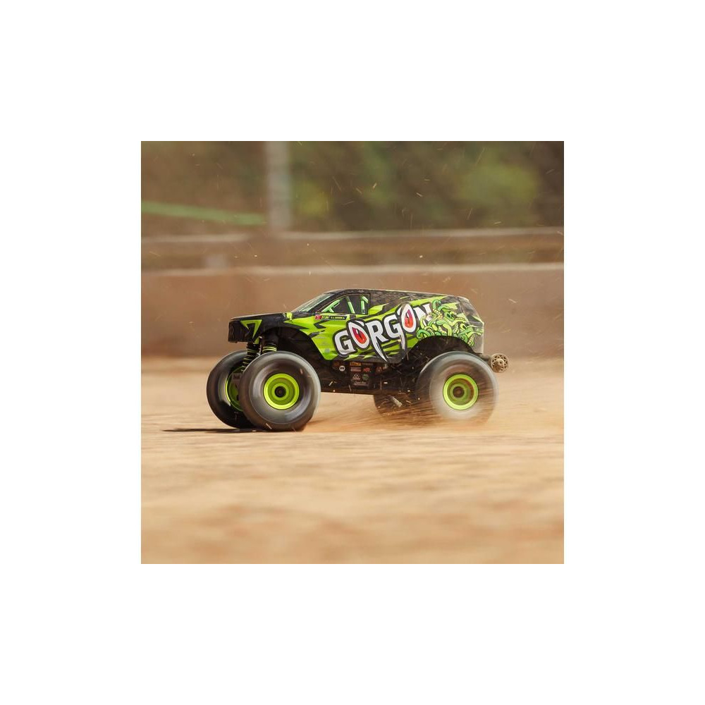 1:16 méretarányú Arrma Gorgon Grom távirányítós autómodell, 4WD meghajtással, intelligens funkciókkal és akár 30 km/h sebességgel. Precízen megépített, kisméretű, szórakoztató modell a népszerű monster truck típusból. Stílusos karosszéria, teljesen vezetésre kész, akkumulátorral és töltővel együtt.