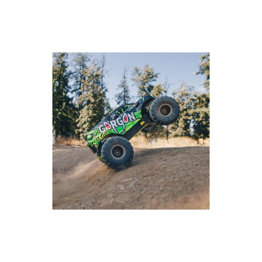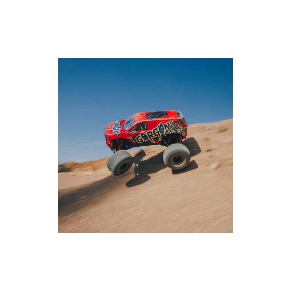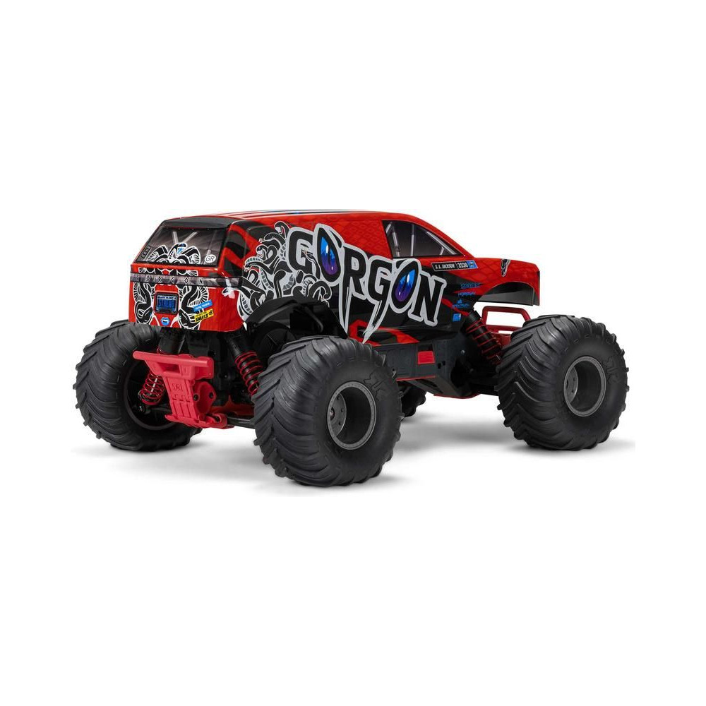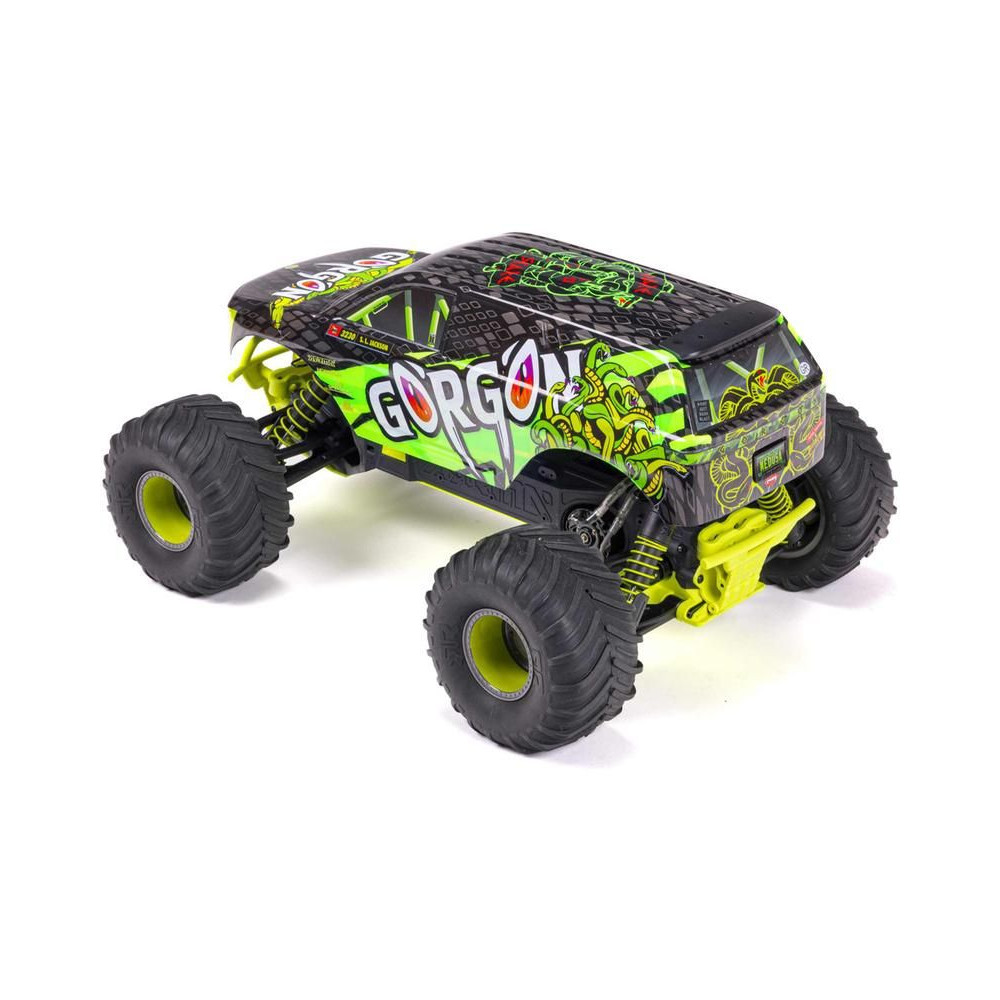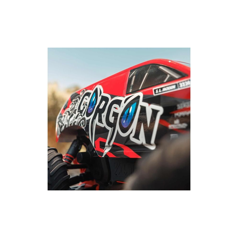 A Gorgon rögtön a dobozból kivéve megragadja a figyelmet eredeti megjelenésének köszönhetően. A karosszéria gyárilag nagyon vonzó, modern stílusban készült, és színben illeszkedik az egyes alkatrészekhez, mint például a csíkok, az akkumulátorfedél, a csúszótalpak és a lökhárítók. AzARRMA technológiának köszönhetően a kompozit tengely rendkívül tartós. A fokozatmentesen állítható felfüggesztés, az olajos lengéscsillapítók és az állítható fénysáv kényelmes vezetést biztosítanak. A megállíthatatlan vonóerő érdekében a 2WD hajtáslánc a MEGA 550 azonos MEGA 550 motorjáról az erőt a nejlon tárcsákra szerelt masszív dBoots® Chevron abroncsokra továbbítja. Az alkalmazott fém fogaskerekek kellően tartósak ahhoz is, hogy egy esetlegesen középhajtású rendszerre lehessen frissíteni.