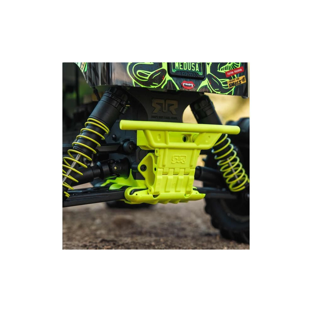 A Gorgon rögtön a dobozból kivéve megragadja a figyelmet eredeti megjelenésének köszönhetően. A karosszéria gyárilag nagyon vonzó, modern stílusban készült, és színben illeszkedik az egyes alkatrészekhez, mint például a csíkok, az akkumulátorfedél, a csúszótalpak és a lökhárítók. AzARRMA technológiának köszönhetően a kompozit tengely rendkívül tartós. A fokozatmentesen állítható felfüggesztés, az olajos lengéscsillapítók és az állítható fénysáv kényelmes vezetést biztosítanak. A megállíthatatlan vonóerő érdekében a 2WD hajtáslánc a MEGA 550 azonos MEGA 550 motorjáról az erőt a nejlon tárcsákra szerelt masszív dBoots® Chevron abroncsokra továbbítja. Az alkalmazott fém fogaskerekek kellően tartósak ahhoz is, hogy egy esetlegesen középhajtású rendszerre lehessen frissíteni.