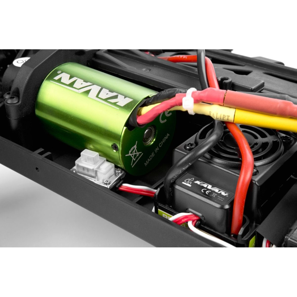 A modell megbízható, 6 kg-os szervóval és 50 A-s vezérlővel van felszerelve, hogy a kormányzás irányítása mindig biztosított legyen.