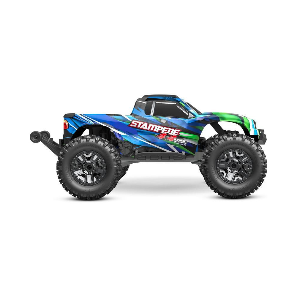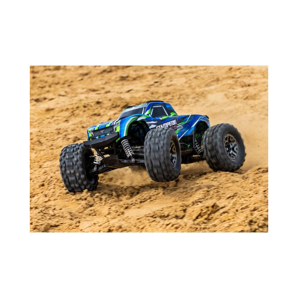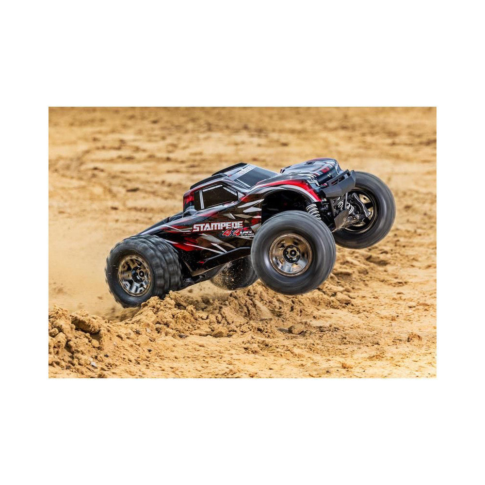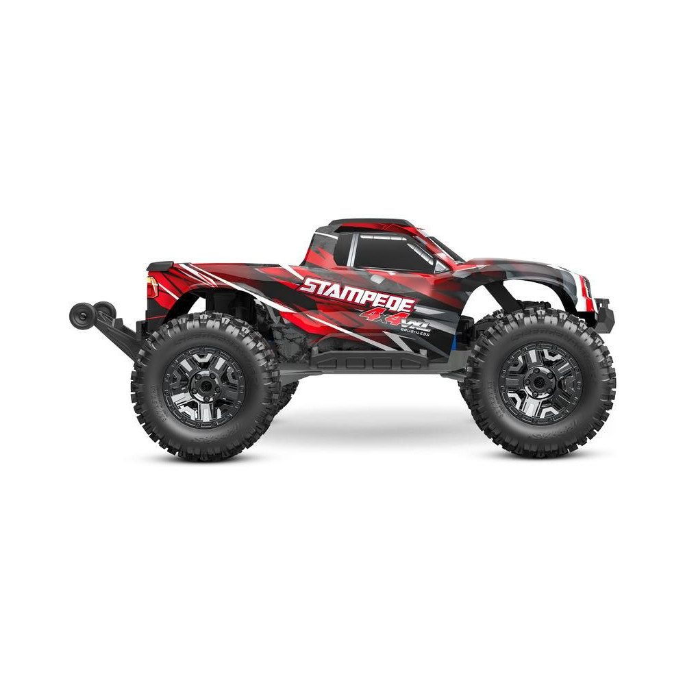 A Stampede 4x4 VXL RC modellautó visszatért - nagyobb és erősebb, mint valaha! A túlméretezett 540XL kefe nélküli motornak és a bevált VXL-3S vezérlőnek köszönhetően a modell játékosan és szórakoztatóan, akár 96 km/h sebességgel is átjut minden akadályon. A 4x4-es hajtás és a TSM elektronikus stabilitási rendszer hozzájárul a kiváló kezelhetőséghez. A nagy tartósság érdekében a Stampede gyárilag az Extreme Heavy Duty készlettel van felszerelve. A letisztult megjelenés és az egyszerű akkumulátorcsere érdekében gyorskioldású karosszéria rögzítő rendszert használnak. A kemény terepjáró kihívásokhoz SledgeHammer gumiabroncsokat használnak.