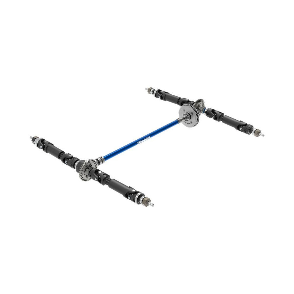 Az extrém teljesítmény, maximálisan tartós alkatrészeket igényel. Ezért a hajtáslánc egy acél első kerékből, valamint az első és hátsó tengely közötti erőelosztást biztosító középső differenciálműből áll. Ezenkívül a nyomatékot egy extrudált alumínium középtengelyen keresztül továbbítják az első és hátsó differenciálművekhez, majd robusztus teleszkópos tengelyeken keresztül a kerekekhez. Minden forgó alkatrész kiváló minőségű tokozott csapágyakban van elhelyezve. DifferenciálműAz iálok fém fogaskerekekkel vannak felszerelve a legnagyobb tartósság érdekében.