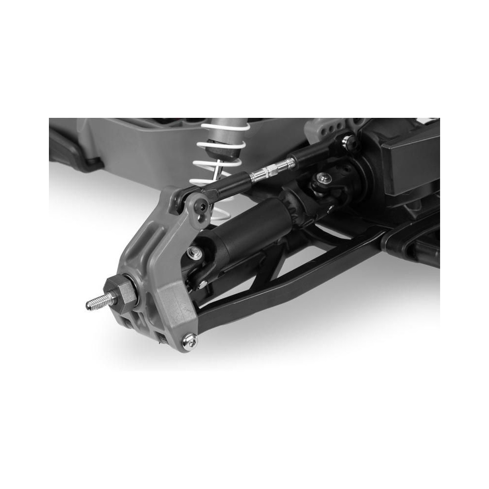 A hosszú karút elnyeli az éles ütéseket is, és javítja a modell kezelhetőségét. Minden helyzetben precíz és gyors kormányreakciót biztosít. A végtelen szórakozás érdekében állítható olajos lengéscsillapítók vannak a futóművön.