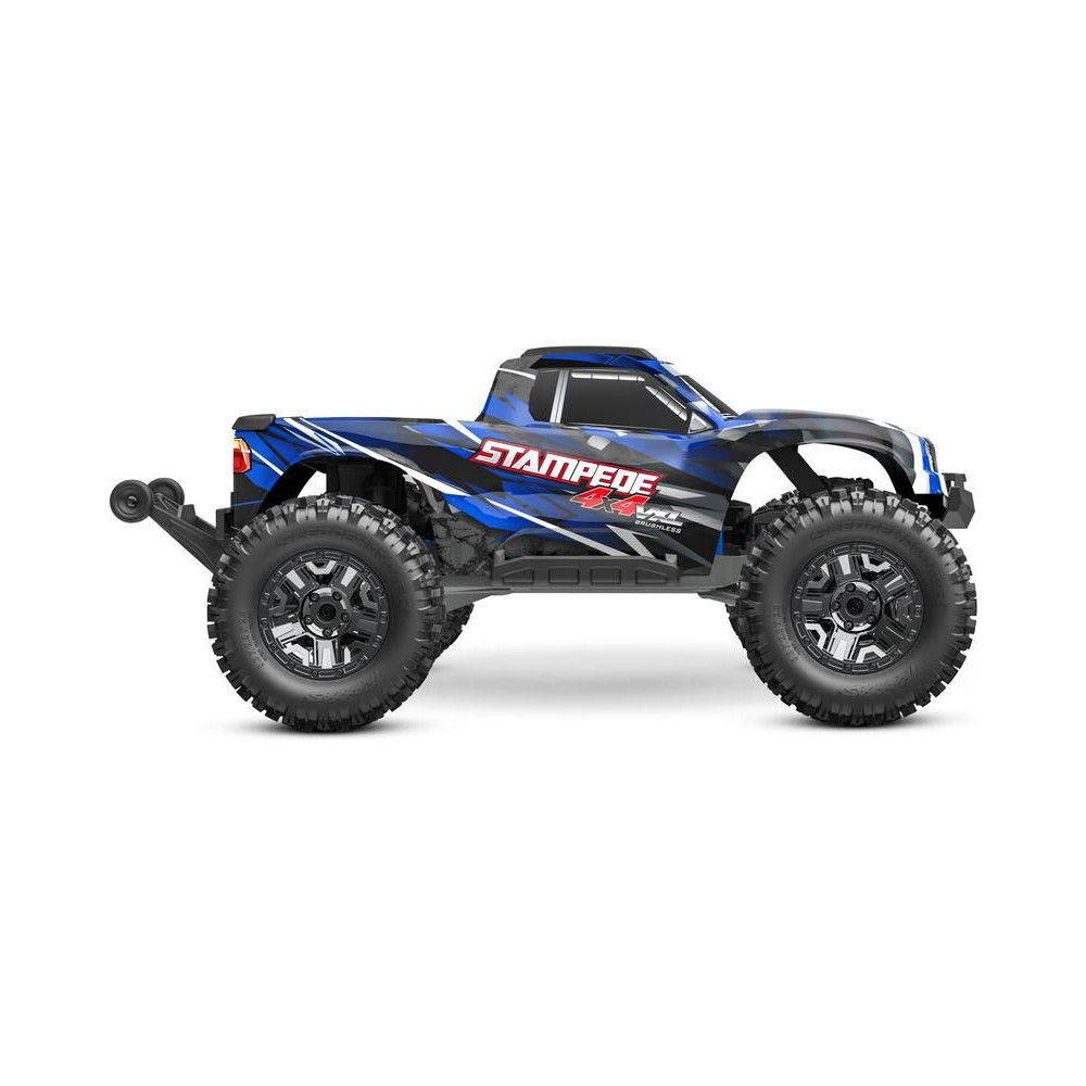 Traxxas Stampede VXL RC modell 1:10 méretarányban, 4x4 hajtással, túlméretezett 540XL kefe nélküli motorral, VXL-3S vezérlővel, akár 96 km/h sebességet is elérhet. Elektronikus menetstabilizátorral. Extreme Heavy Duty alkatrészek a nagy tartósság érdekében, gumírozott karosszériával és Sledgehammer gumiabroncsokkal.