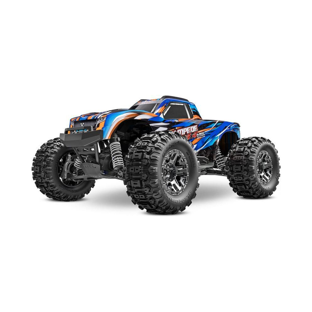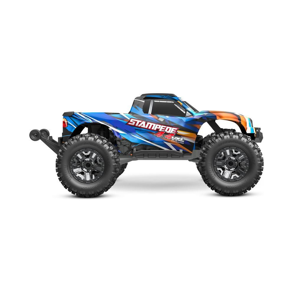 Traxxas Stampede VXL RC modell 1:10 méretarányban, 4x4 hajtással, túlméretezett 540XL kefe nélküli motorral, VXL-3S vezérlővel, akár 96 km/h sebességet is elérhet. Elektronikus menetstabilizátorral. Extreme Heavy Duty alkatrészek a nagy tartósság érdekében, gumírozott karosszériával és Sledgehammer gumiabroncsokkal.