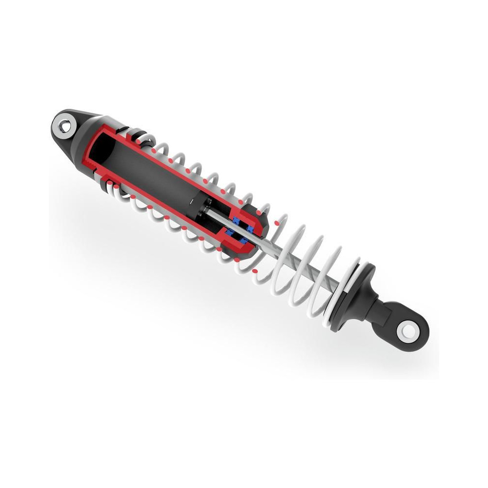 A nagy emelésű olajtompítók kettős X-gyűrűt használnak a tökéletes tömítés és a tökéletes működés érdekében. A robusztus kialakítás a nagy olajtérfogattal kombinálva még a nehéz terepen történő kemény ütéseket is képes elnyelni. A rugók beállításával és az olaj viszkozitásának változtatásával a lengéscsillapítók tetszés szerint hangolhatók.