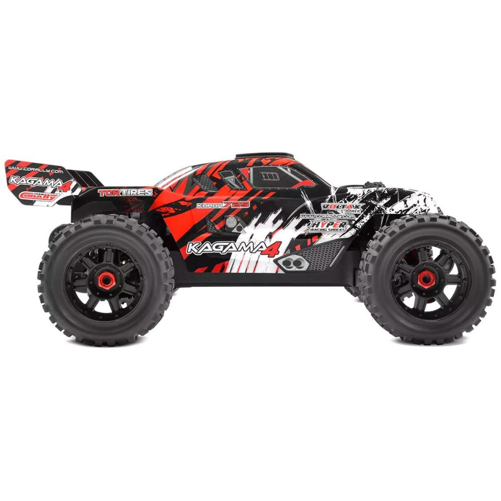 A hibrid hilijeA becsípődött motortartó három motorpozíciót kínál a fogaskerék holtjátékának pontos beállításához. Az acélvázas, megerősített hajtáslánc és a robusztus 52 fogas főváltó hosszú élettartamot biztosít. A Kagama és Sketer széles kormányai stabilitást és terepjáró képességet biztosítanak, míg az új egykerekű kerék segít a hatalmas teljesítmény kezelésében. A Kuron 725 AC motortól a Torox 135 szabályozóig – minden alkatrész hozzájárul az izgalmas, több mint 80 km/h-s végsebességhez. Egy CT2S 2,4 GHz-es adó, alvázmerevítő rendszer és nagy leszorítóerőt biztosító szárny teszi teljessé a csomagot, így a Kagama4 a Team Corally innovációs és teljesítménybeli örökségének igazi bizonyítéka.