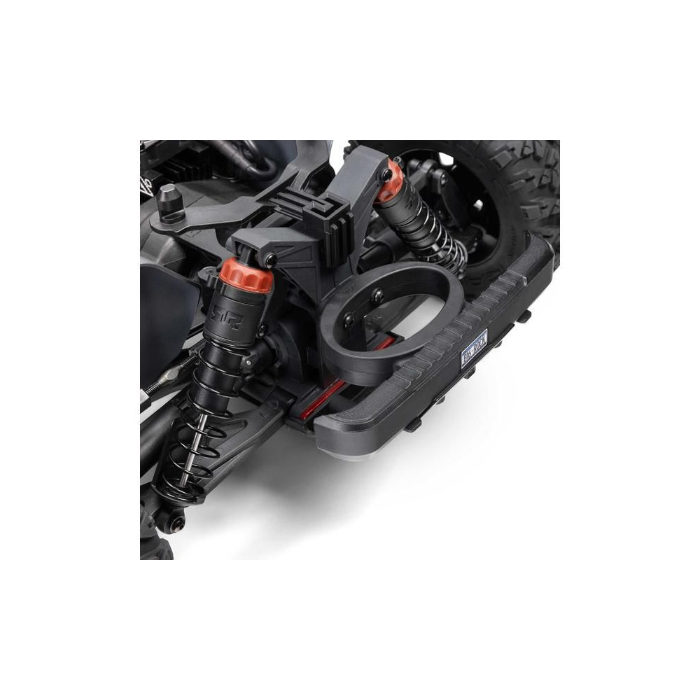 A bevált, tartós ARRMA® 4X4 platform lehetővé teszi a nagy sebességű vezetést szinte bármilyen környezetben – terepen, kavicson és füvön, parkolókban, valamint burkolt és aszfalt felületeken. Az alváz tartósságát az erős kompozit alváz és a megnövelt magasságú porvédők biztosítják. A használt fém fogaskerekek kellően tartósak a váltakozó áramú meghajtáshoz. A teljesítmény az első, a hátsó és a középső differenciálmű segítségével jut el az egyes kerekekhez. A maximális tapadást a bevált dBoots gumiabroncsok biztosítják. A Spektrum SLT adó biztonságos, meghibásodás nélküli működést biztosít, a gondtalan vezetés érdekében a modell vízálló* alkatrészeket használ - egy Spektrum 2 az 1-ben 80A-es vevővel ellátott szabályozót és egy nagy nyomatékú, fém fogaskerekes Spektrum S662 szervovezérlést.