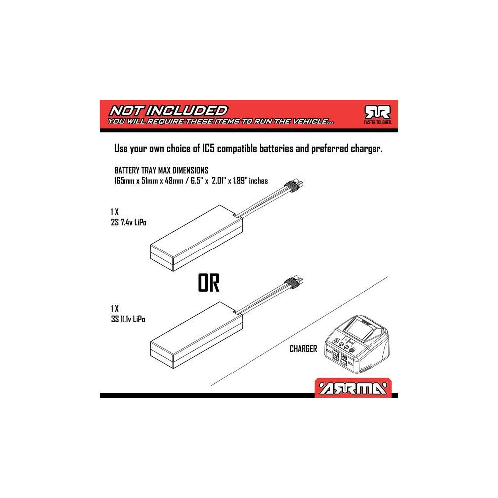 Az Arrma Big Rock egy sokoldalú teljesítménymodell, amely fokozatosan fejlődhet a vezetési képességeiddel együtt. Kezdésként a modellt egy 2S LiPo akkumulátorral is működtetheted, és a gázteljesítményt 50%-ra korlátozhatod. Később 75%-ra és 100%-ra is növelheted a gázt, sőt, akár egy 3S LiPo akkumulátort is csatlakoztathatsz a modellhez, és akár 80 km/h sebességet is elérhetsz.
