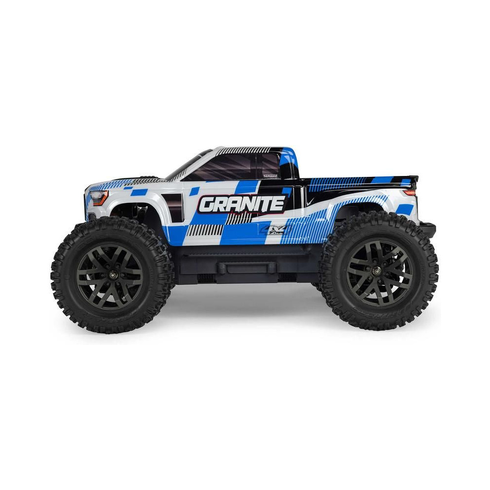 Az Arrma Granite Mega 1:10-es távirányítású autómodell 4x4 meghajtással, ideális gyerekeknek és kezdőknek, és a 11%-kal nagyobb, 665-ös (nagy nyomatékú) egyenáramú motornak köszönhetően azonnal extra nyomatékot biztosít. Akár 32 km/h sebességet is elérhet. Tartós alváz csúszólemezekkel és megemelt oldalakkal a szennyeződések bejutása ellen. Robusztus differenciálművek fém fogaskerekekkel. Olaj lengéscsillapítók. Csat nélküli test a könnyű elemcsere érdekében. Spektrum SLT2 távirányítós készlet.
