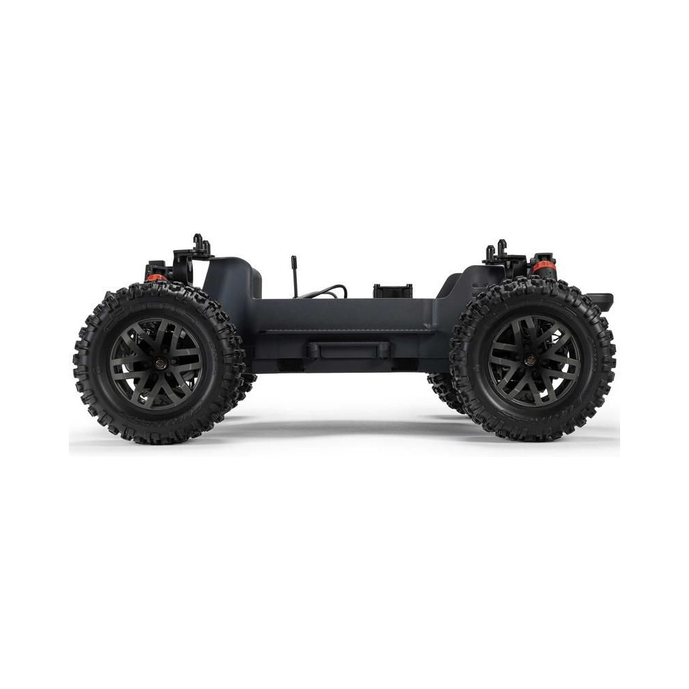 Nincs is jobb módja a terepjárós kalandok elkezdésének, mint ezzel a lenyűgöző Monster teherautóval, amely később könnyen fejleszthető AC meghajtásra is a 3S LiPo teljesítmény-előkészítésű sebességváltónak és a fém bolygókerekes differenciálműveknek köszönhetően. A megnövekedett teljesítmény kezelése érdekében a klasszikus csúszókuplung helyett egy speciális túlterhelés elleni tengelykapcsolót szereltek be. A terepjáró kerékfelfüggesztés és az olajjal töltött lengéscsillapítók tökéletesen elnyelik az egyenetlenségeket. A hasmagasságot rugós alátétekkel állíthatod be ugrásokhoz és egyenetlen terepen való kerékpározáshoz. Terepen és aszfalton egyaránt a dBoots Fortress MT gumiabroncsok lenyűgöző tapadást biztosítanak.