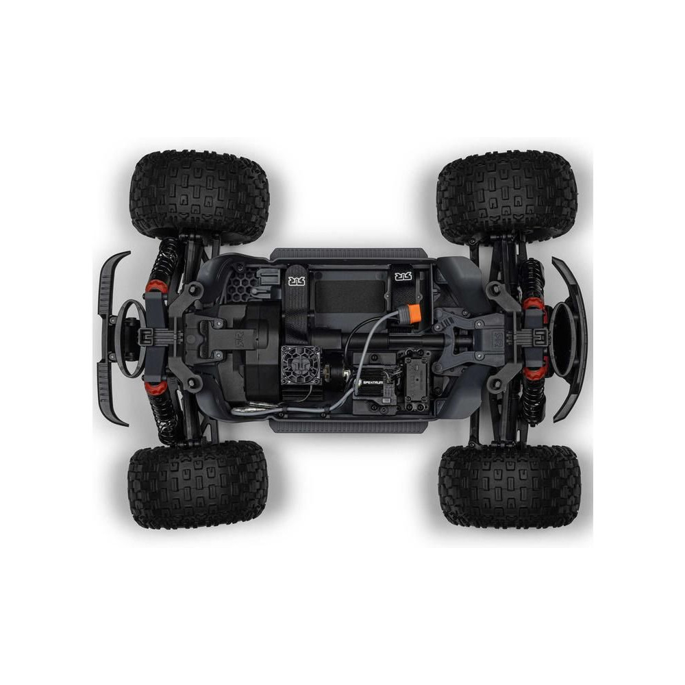 A karosszéria befejezett és festett, és egy rögzítőrendszerrel van felszerelve az alvázhoz, hogy az akkumulátor könnyen cserélhető és hozzáférhessen az elektronikához. A modell egy minőségi Spektrum 2in1 vezérlőegységgel van felszerelve, amely integrált szabályozóval és vevővel rendelkezik. Az akkumulátor típusa könnyen beállítható a készüléken egy rövidzárlatos jumper segítségével. A készülék rendelkezik egy külső vevőegység csatlakoztatására szolgáló porttal is. A nagy 665-ös motor most egy alumínium hűtőt és egy 35 mm-es ventilátort tartalmaz, hogy minden körülmények között megfelelő üzemi hőmérsékletet tartson fenn. Csak add hozzá az akkumulátort és a töltőt (külön kaphatók), és máris indulhatsz az ARRMA GRANITE MEGA 665 4x4-gyel a kertben, a terepen vagy az alacsony fűben, és élvezheted a motorozást.
