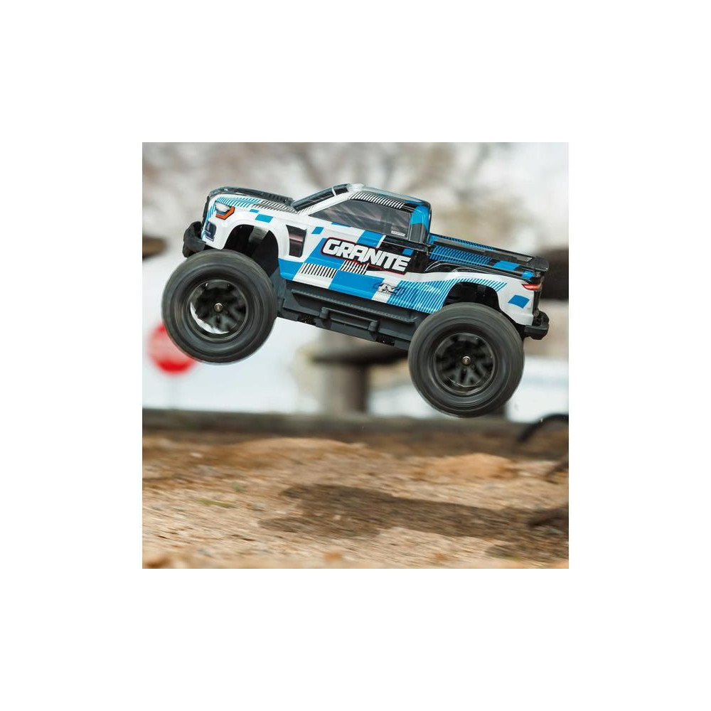 Az Arrma Granite Mega 1:10-es távirányítású autómodell 4x4 meghajtással, ideális gyerekeknek és kezdőknek, és a 11%-kal nagyobb, 665-ös (nagy nyomatékú) egyenáramú motornak köszönhetően azonnal extra nyomatékot biztosít. Akár 32 km/h sebességet is elérhet. Tartós alváz csúszólemezekkel és megemelt oldalakkal a szennyeződések bejutása ellen. Robusztus differenciálművek fém fogaskerekekkel. Olaj lengéscsillapítók. Csat nélküli test a könnyű elemcsere érdekében. Spektrum SLT2 távirányítós készlet.