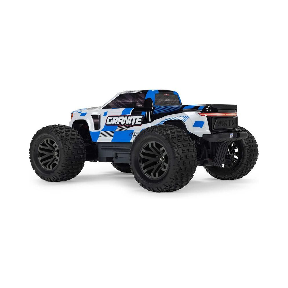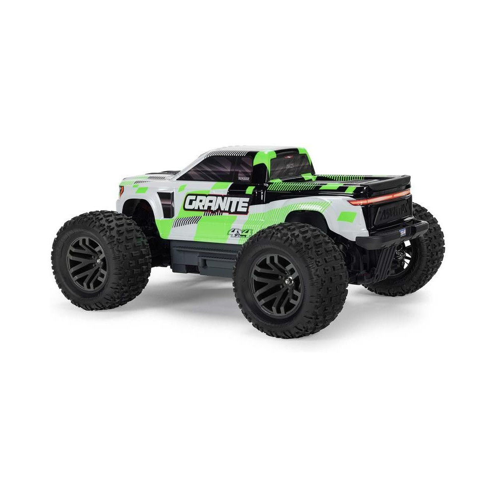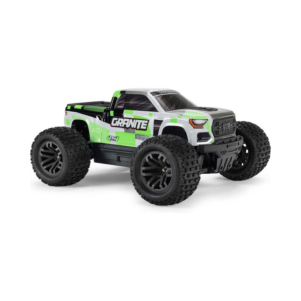 RC autómodell Arrma Granite Mega 1:10 méretarányban, 4x4 meghajtással. Akár 32 km/h sebességet is elérhet. Tartós alváz csúszó lemezekkel és megemelt oldalfalakkal. Robusztus differenciálművek fém fogaskerekekkel. Túlméretezett, 11%-kal nagyobb egyenáramú motor, 665. Olajcsillapítók. Spektrum SLT2 távirányítós készlet.