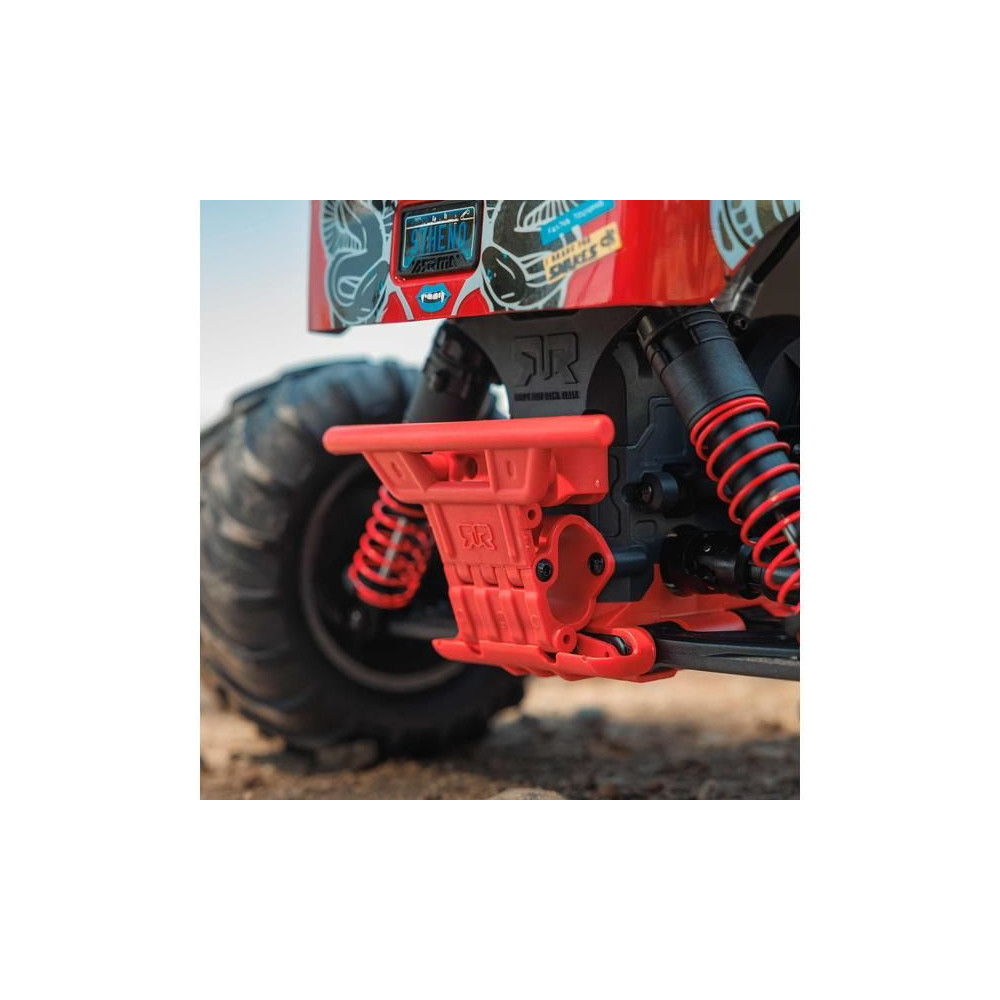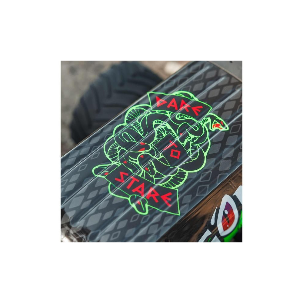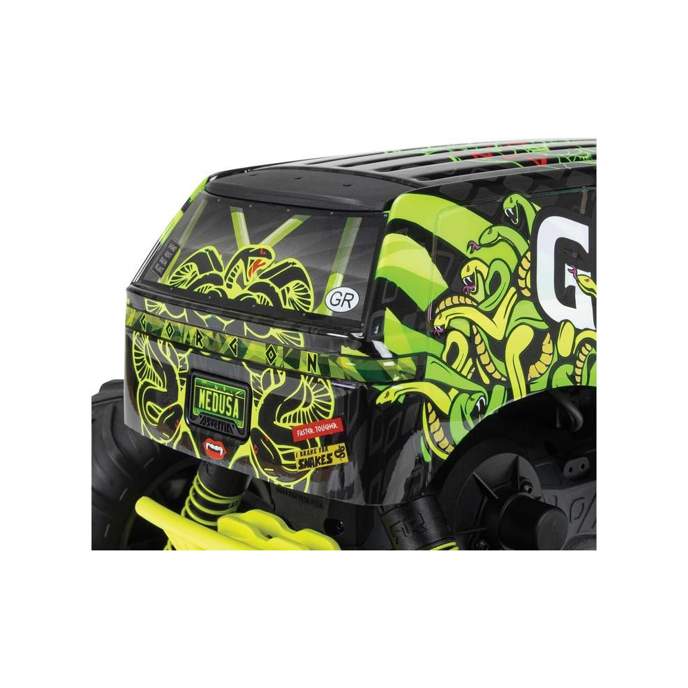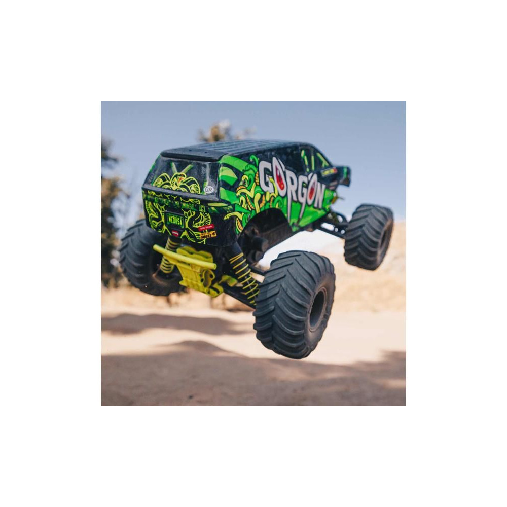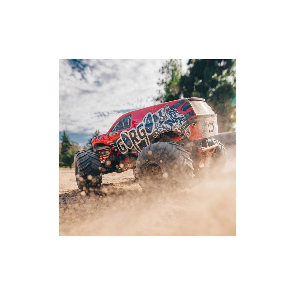 A Gorgon már a dobozból kivéve is magára vonja a figyelmet eredeti megjelenésével. A karosszéria gyárilag, nagyon vonzó modern stílusban készült, és színben harmonizál az egyes alvázalkatrészekkel, például a rugókkal, az akkumulátorrekesszel, a haspáncélokkal és a lökhárítókkal. A bevált ARRMA technológia a kompozit alváznak köszönhetően nagy ellenállást biztosít. A független felfüggesztés, az olajlengéscsillapítók és az állítható hasmagasság kényelmes utazást biztosít. A megállíthatatlan tapadás érdekében a 2WD váltó a MEGA 550 DC motor erejét a hatalmas, 130 mm-es dBoots ® Chevron gumiabroncsokhoz továbbítja, amelyek 57 mm-es nejlon tárcsákra vannak szerelve. A használt fém fogaskerekek elég tartósak ahhoz is, hogy esetleg váltakozó áramú meghajtásra váltsanak.