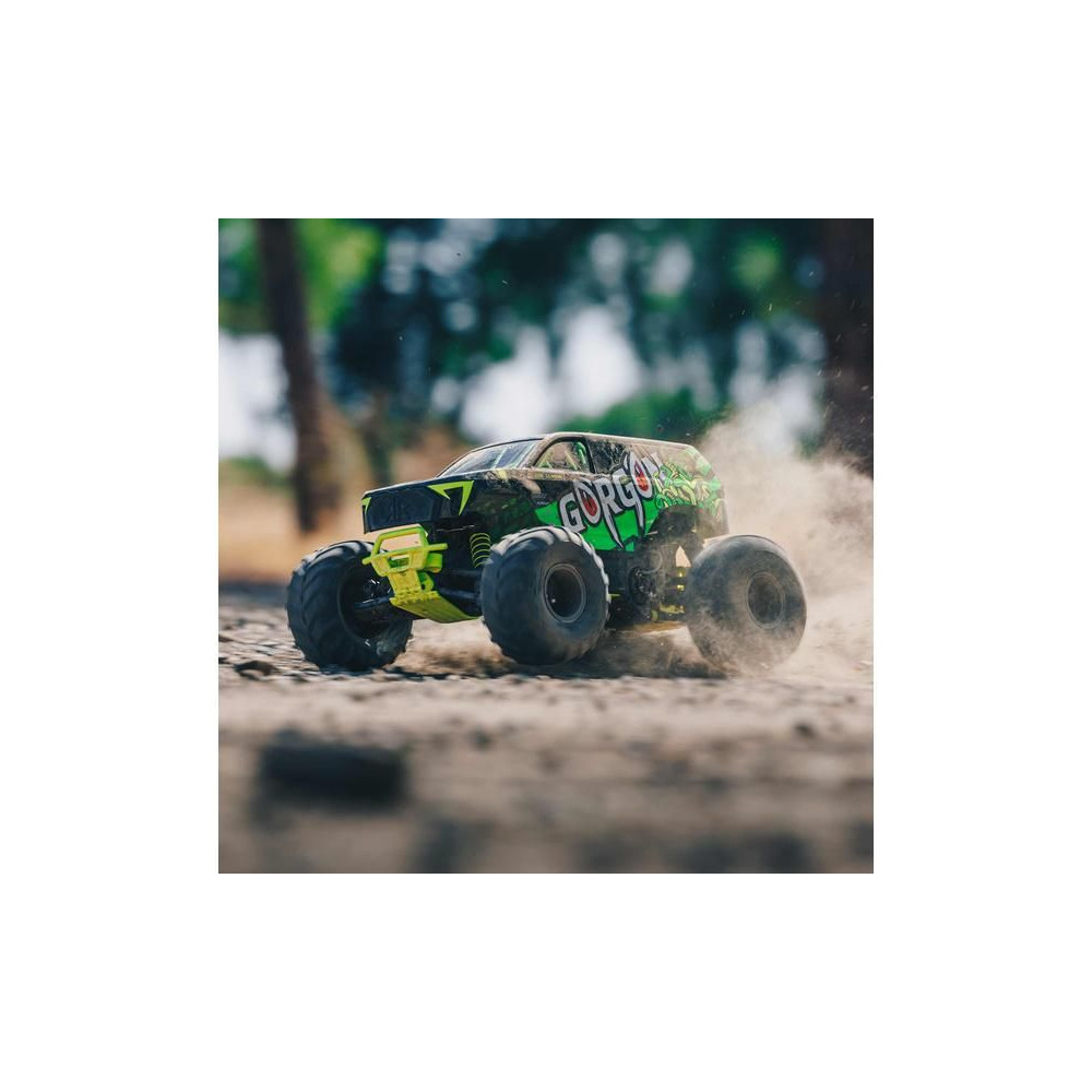 Az Arrma Gorgon 1:10 Smart RTR távirányítós autó egy megfizethető Monster Truck RC modell 2WD meghajtással, független felfüggesztéssel, olajos lengéscsillapítókkal, proporcionális kormányzással és egyenáramú motorral. SLT 2.4 GHz-es RC készlet. NiMH akkumulátor és USB töltő tartozék.