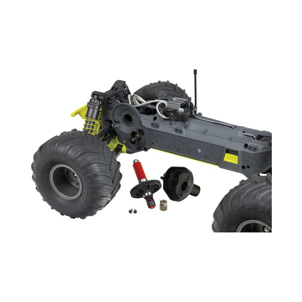 Az ARRMA GORGON MT modell sebességváltója biztosítja az erőátvitelt a MEGA 550 14T egyenáramú motorról a hátsó kerekekre. A sebességváltó mérete megfelelően ellenáll a váltakozó áramú hajtásnak.
