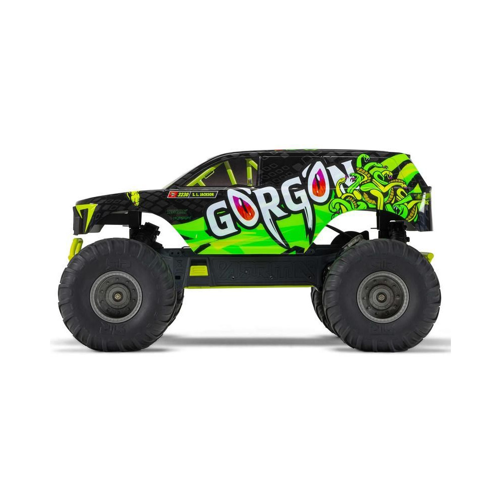 Az Arrma Gorgon 1:10 Smart RTR távirányítós autó egy megfizethető Monster Truck RC modell 2WD meghajtással, független felfüggesztéssel, olajos lengéscsillapítókkal, proporcionális kormányzással és egyenáramú motorral. SLT 2.4 GHz-es RC készlet. NiMH akkumulátor és USB töltő tartozék.