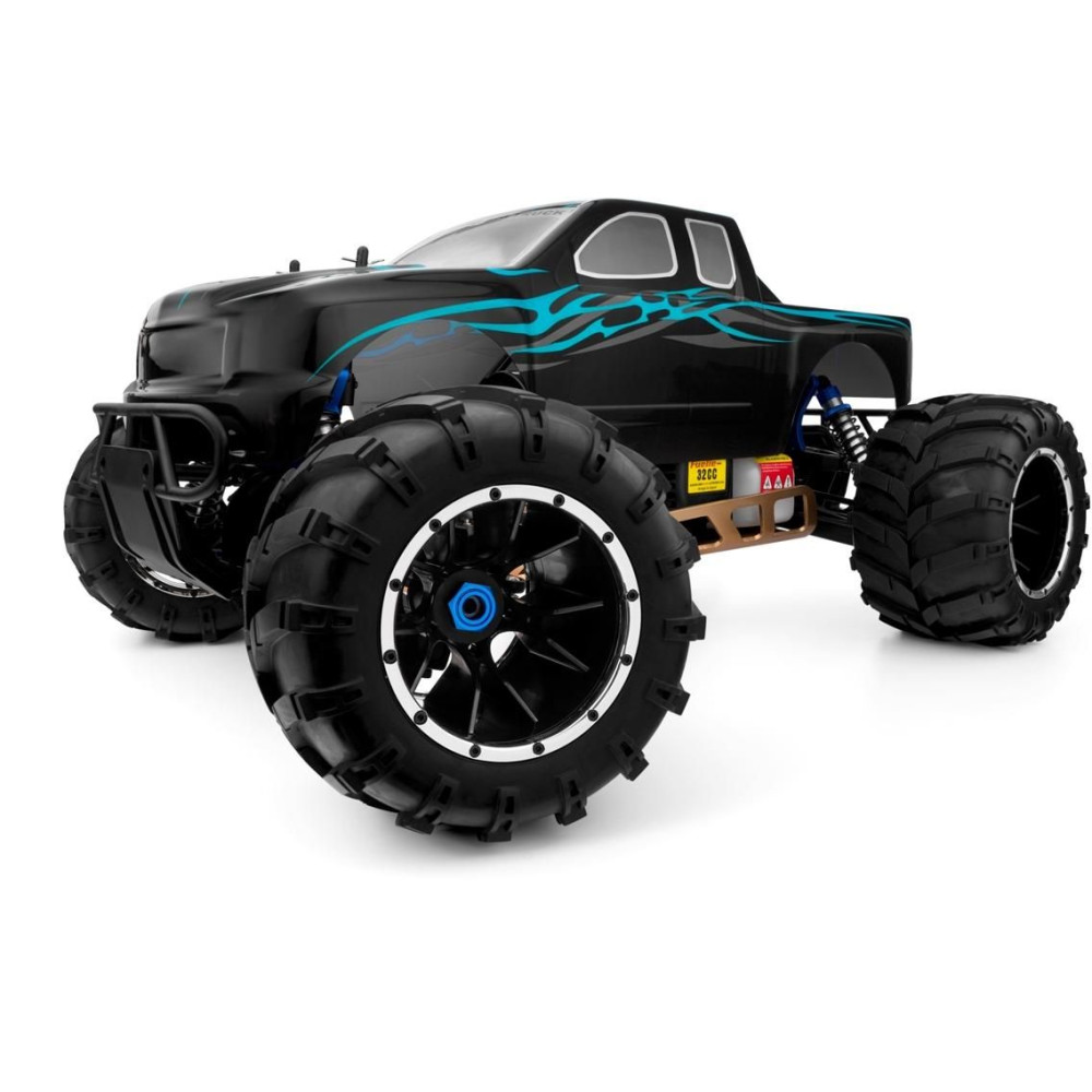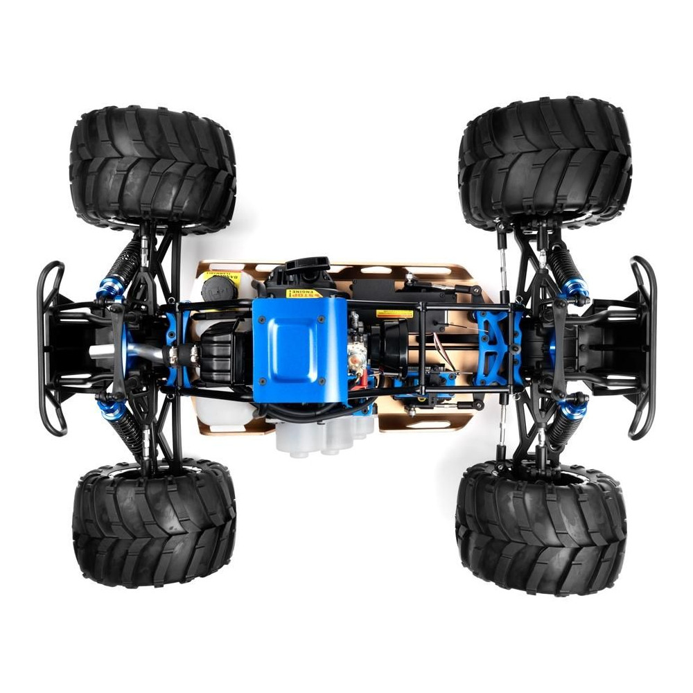 Az óriási Monster teherautó négykerék-meghajtású modelljét egy 32 köbcentis benzinmotor hajtja, húzós indítóval.