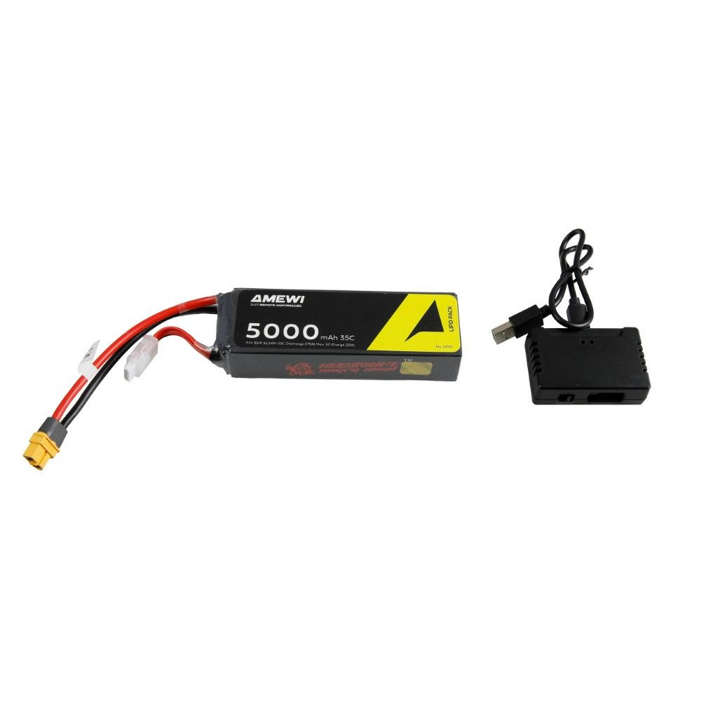 A csomag tartalma: Összeszerelt modell, 2,4 GHz-es távirányító, 3S LiPo akkumulátor, USB töltő (2-4S), szerszámok, dekorációs lap, használati utasítás.