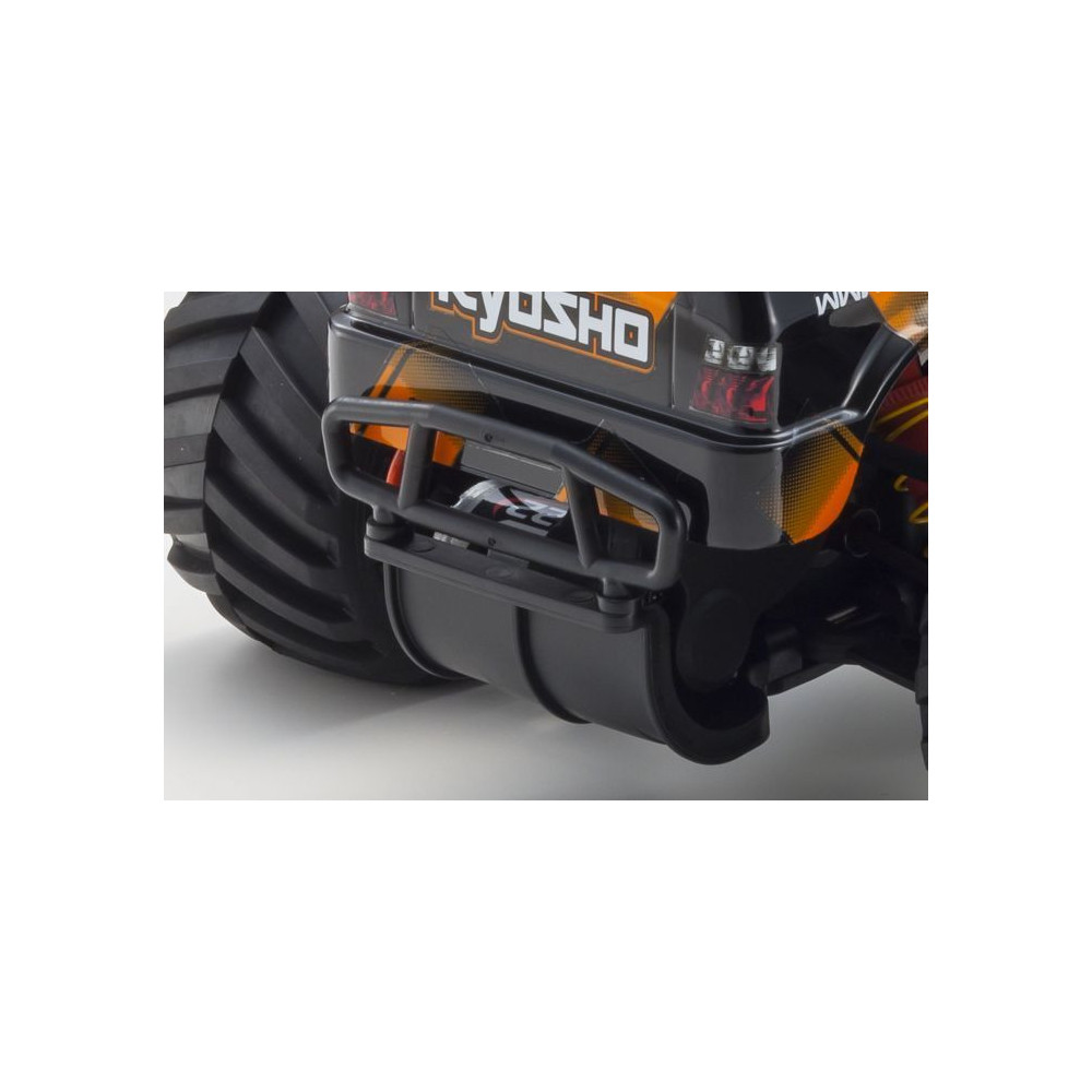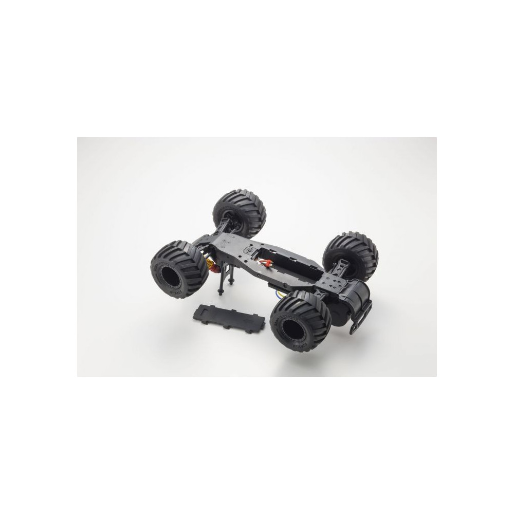 Tak napríklad - pod jednoduchým krytom na spodnej strane šasi sa ukrýva pohonný akumulátor, ktorého výmena je vďaka tomu rýchla a jednoduchá. Prijímač je umiestnený v špeciálnom boxe, ktorý ho chráni pred prachom a vlhkosťou. Skriňa diferenciálu je tiež navrhnutá tak, aby dokázala dobre ochrániť citlivé prevody pred nečistotami. To je dôležitý predpoklad pre zabezpečenie ich dlhej životnosti. Skriňa je vyrobená z pružného a mimoriadne odolného plastu. Ak predsa dôjde k jej poškodeniu, výmenu možno vykonať veľmi ľahko. Ku sprevádzkovaniu modelu budete potrebovať len 4 batérie veľkosti AA (nie sú súčasťou balenia) pre napájanie vysielača. Potom stačí dobiť pohonný akumulátor, vložiť ho do modelu, a auto je pripravené k jazde!