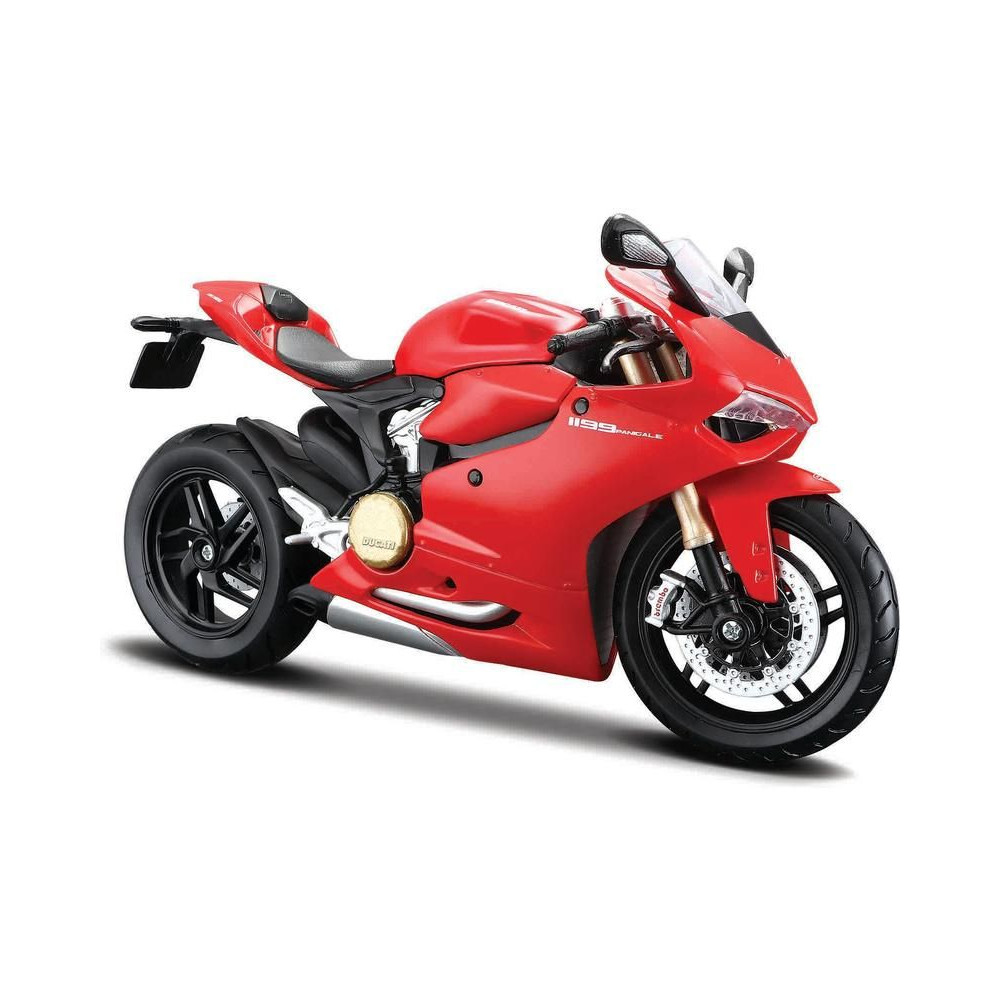 1:12 méretarányú Maisto 39193 modell a Ducati 1199 Panigale országúti motorkerékpárról nem csak gyűjtőknek. Részletes kivitelezés, nagyon barátságos ár, hossza 16 cm. A modell készlet formájában készült.