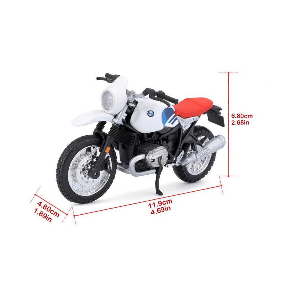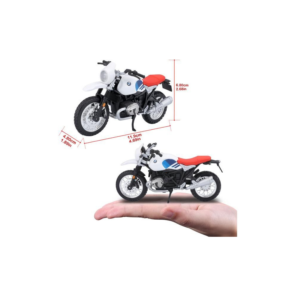 1:18 méretarányú modell egy közúti motorkerékpár Bburago 18-51069 BMW R nineT Urban GS nem csak a gyűjtők számára. Részletes kivitelezés, nagyon barátságos ár, hossza 11 cm.