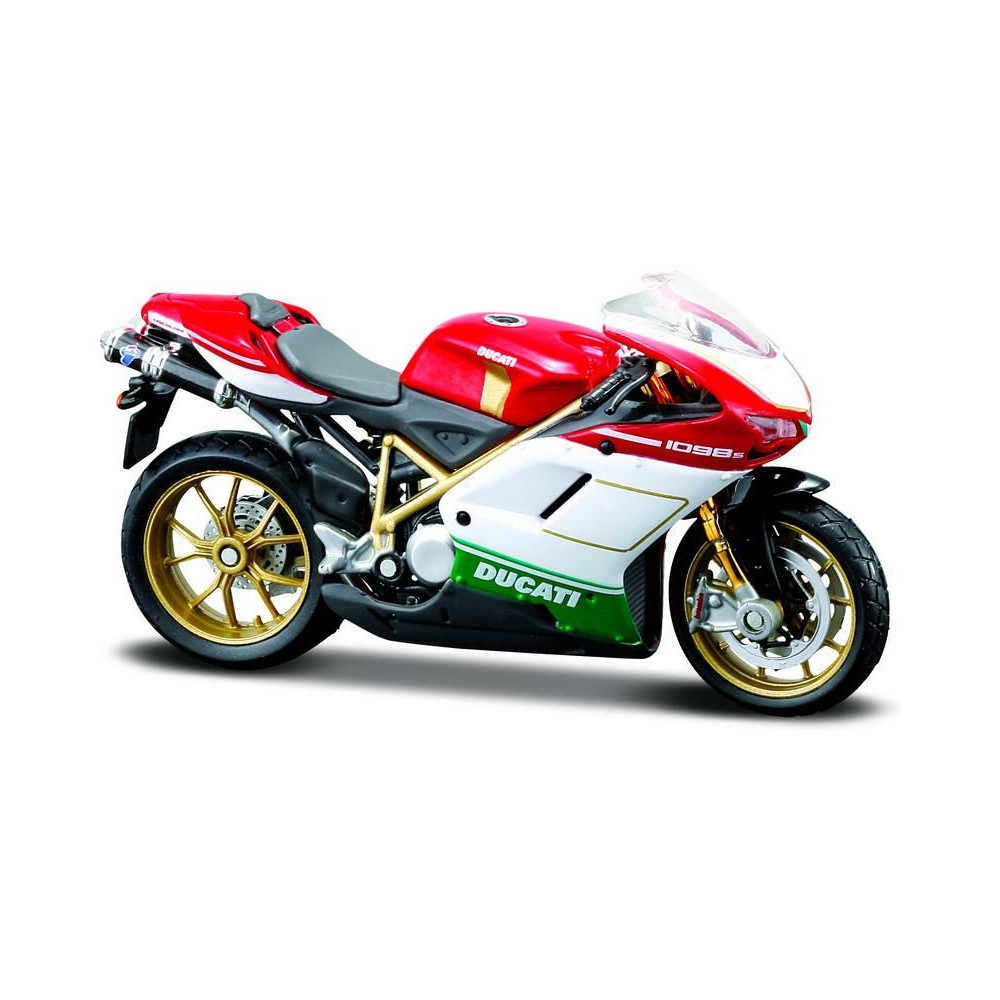A Maisto 1098 sport motorkerékpár modell a Ducati 1098 S Tricolore részletes kivitelben. Ideális ajándék fiúknak és felnőtteknek.