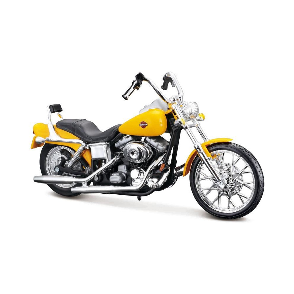 A Maisto 19139-es modell a Harley-Davidson 2001 FXDWG Dyna Wide Glide közúti motorkerékpárt ábrázolja részletesen, műanyag alapon. Tökéletes ajándék fiúknak és felnőtteknek egyaránt.