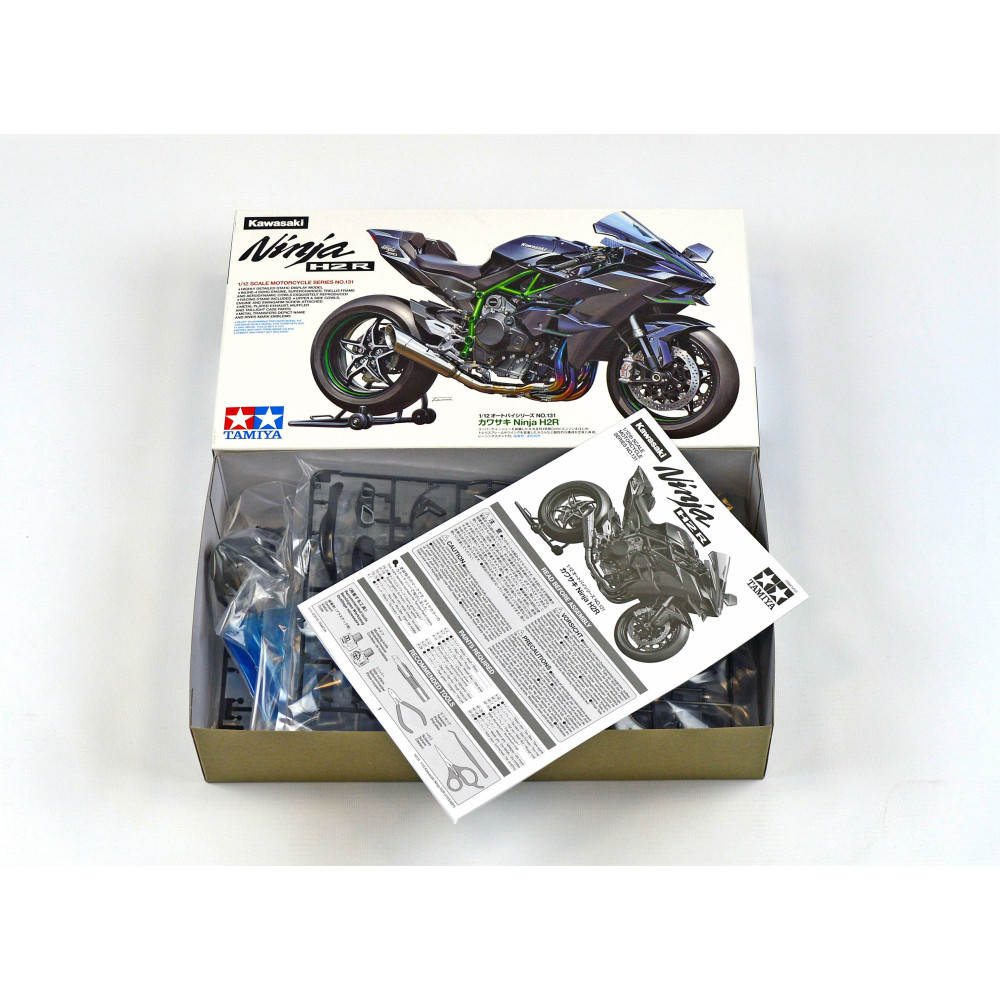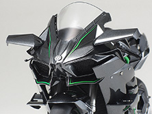 | Zložité čiary mrežového rámu sú znázornené s nadšením, rovnako ako viacdielna komora nasávania vzduchu nad motorom. | Vynikajúce decaly zaisťujú, že prístrojové vybavenie na analógovo-digitálnom mixovacom displeji má ostrú povrchovú úpravu ladiacu so zvyškom modelu. | Nezabudnite na závodné hladké pneumatiky, ktoré sú pre vysokorýchlostný na okruh Ninja H2R absolútnou nevyhnutnosťou. Súčasťou sú aj časti závodného stánku. |